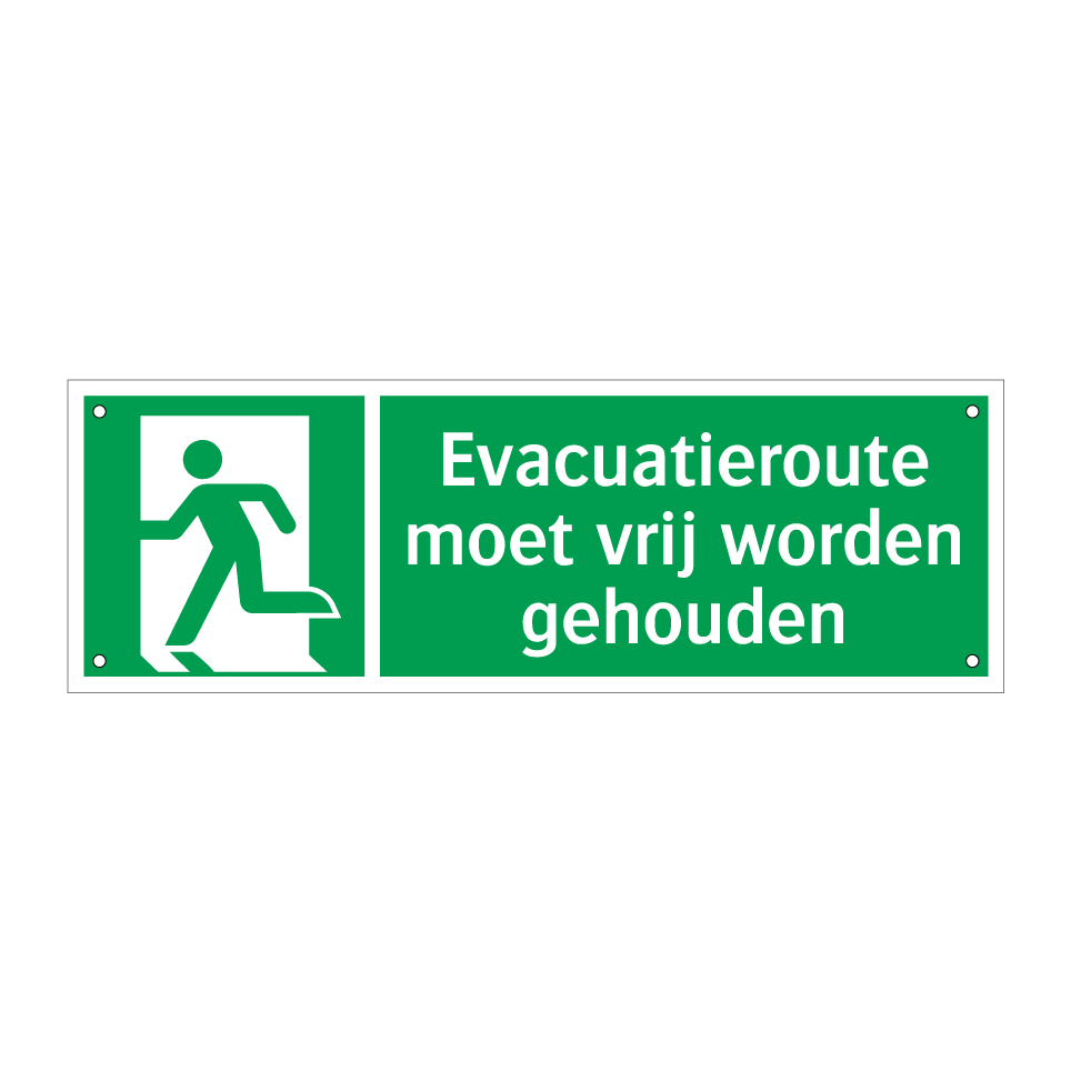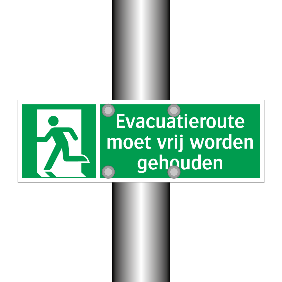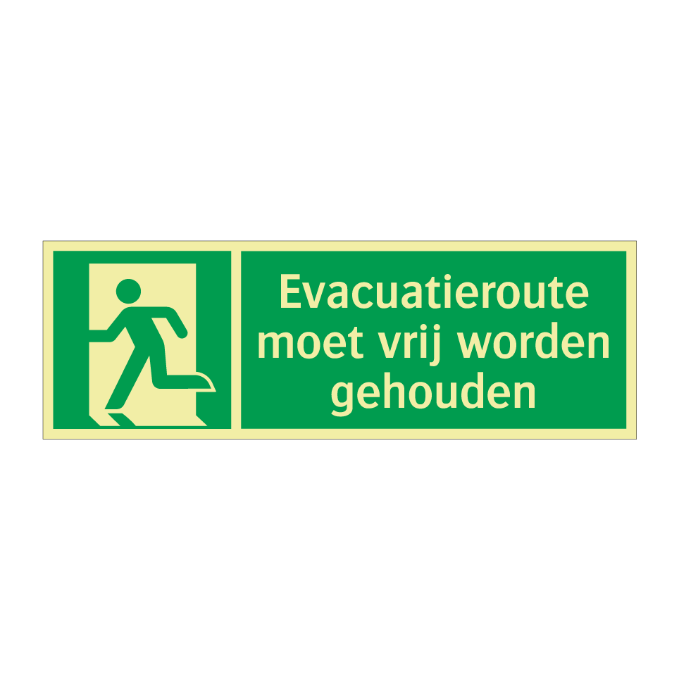 Noodbord met tekst Evacuatieroute moet vrij worden gehouden