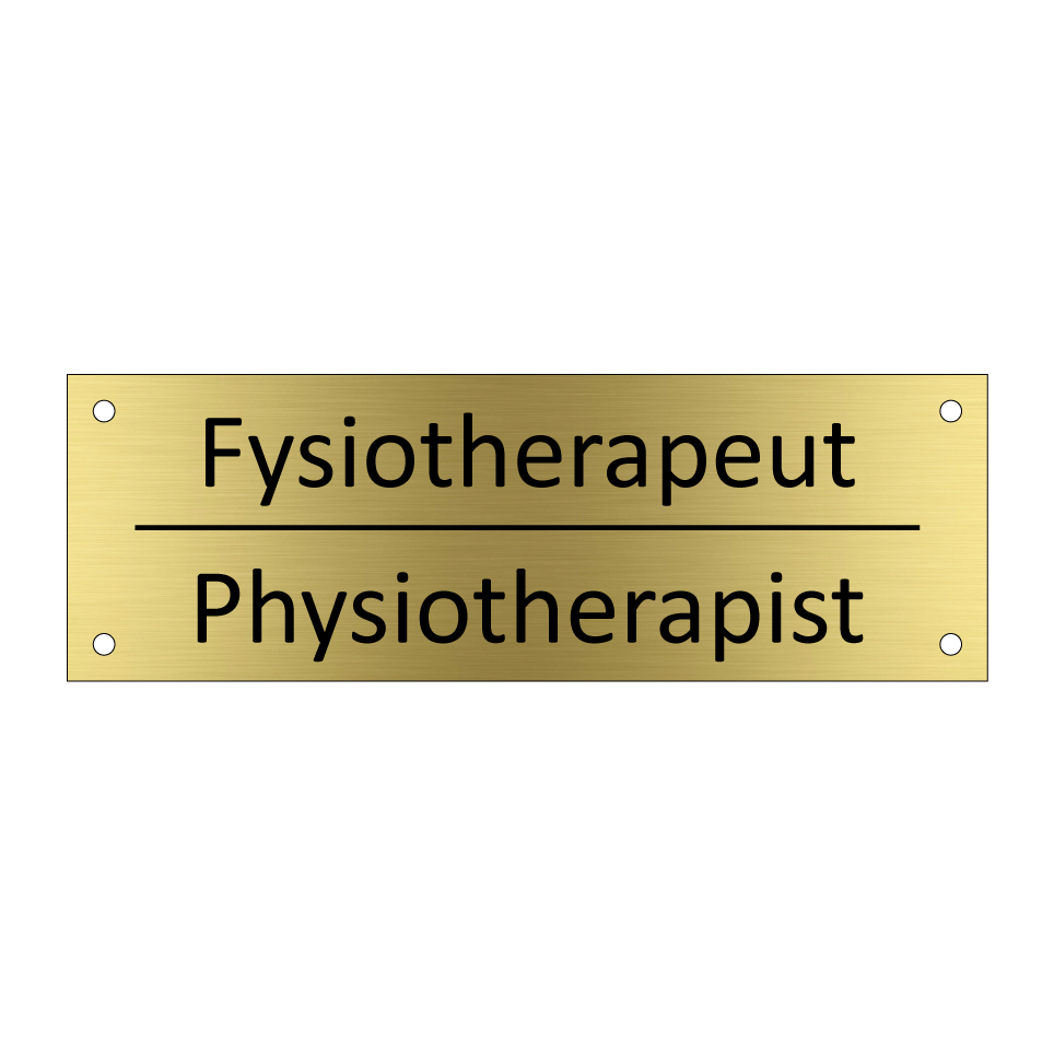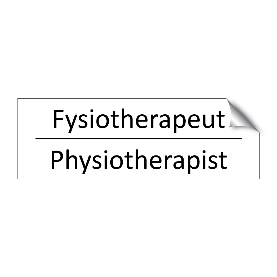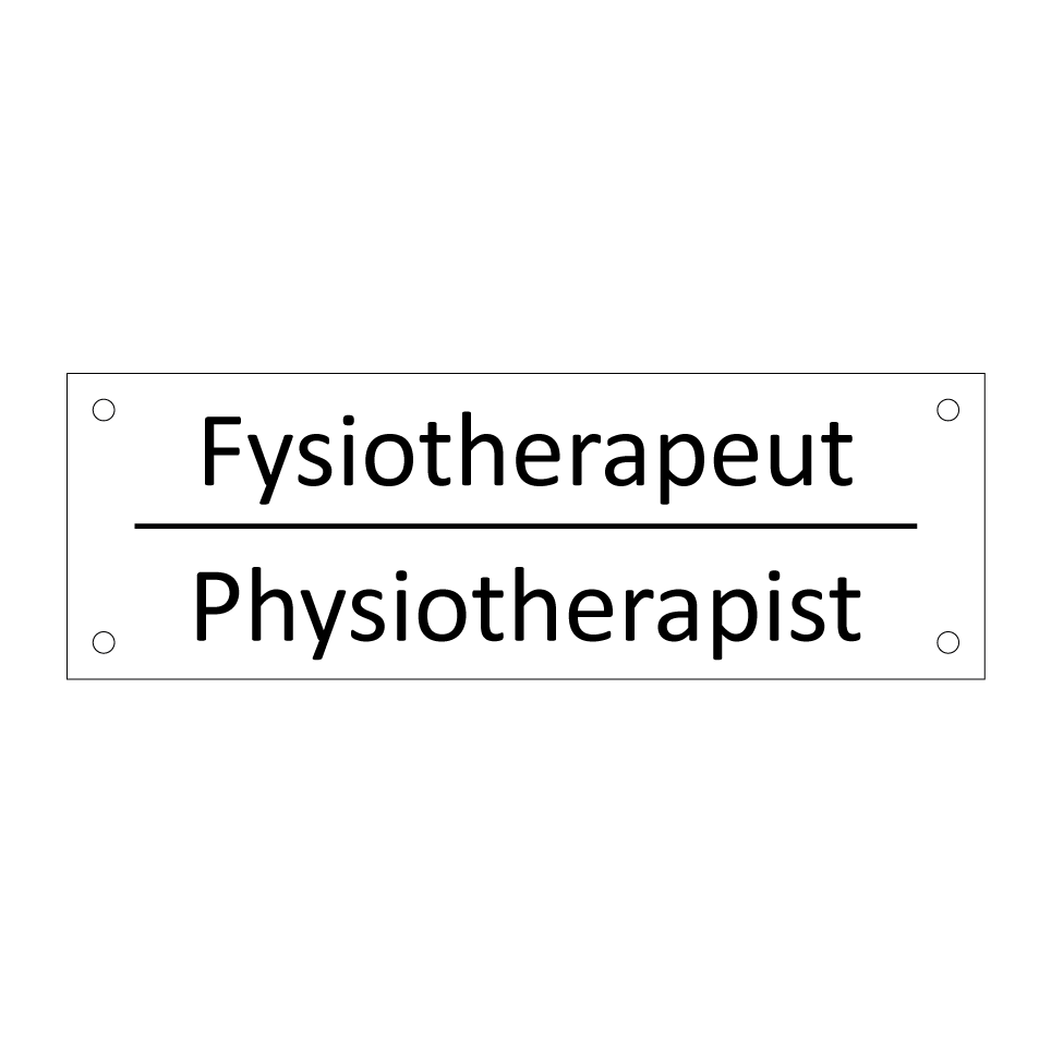 Informatiebord met tekst in het nederlands en engels. Dit bord luidt: Fysiotherapeut evenals met de engelse vertaling Physiotherapist.