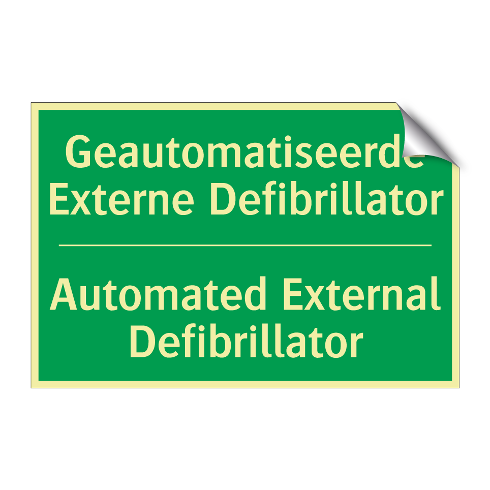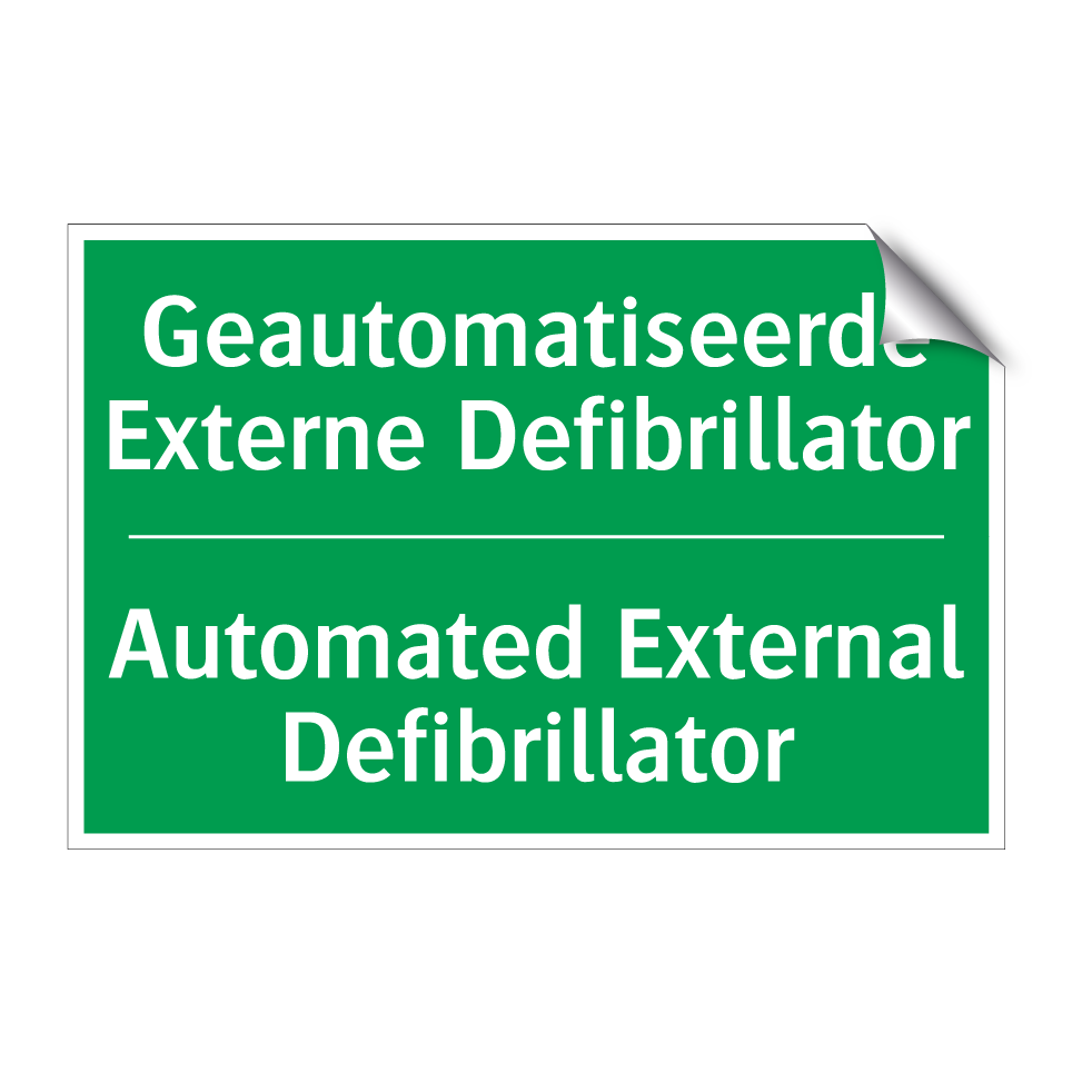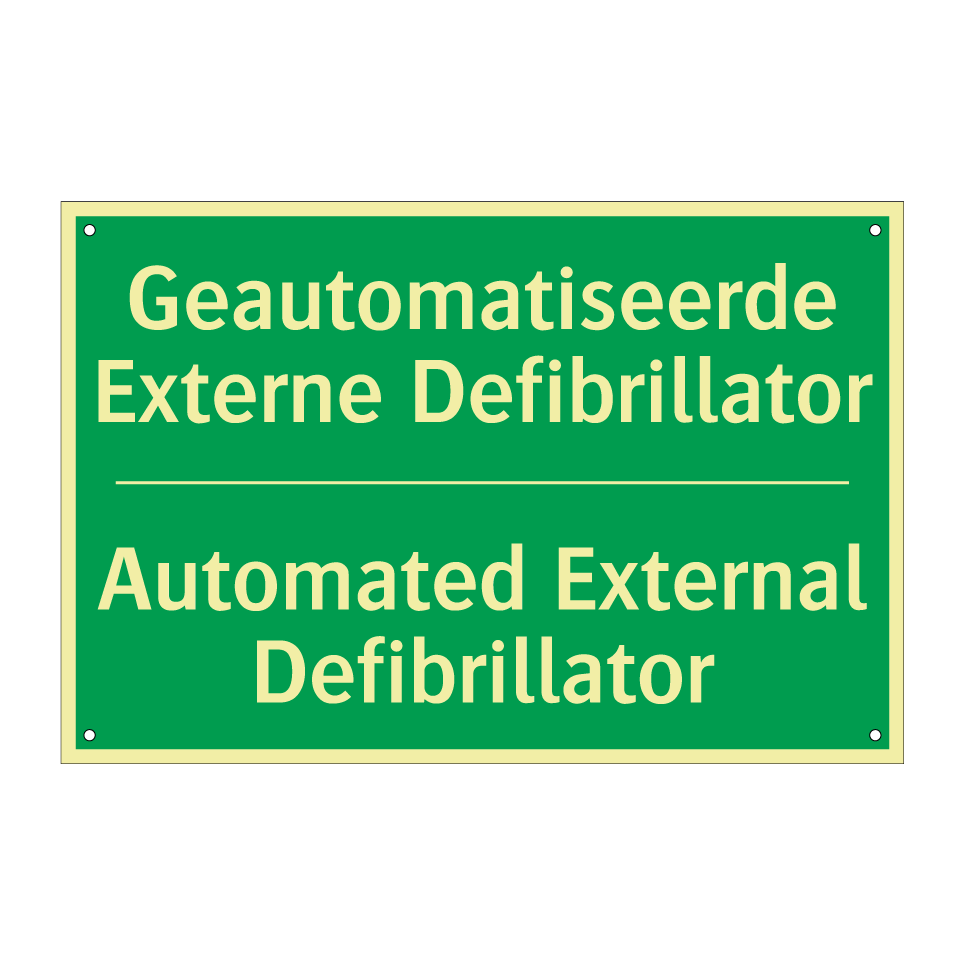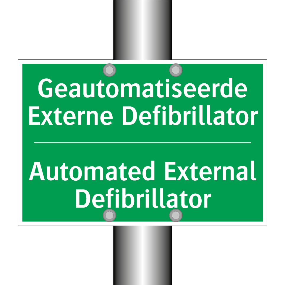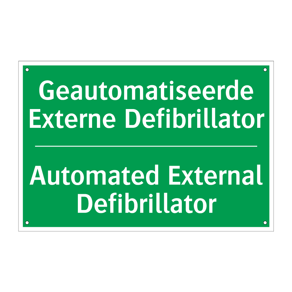 Noodbord met tekst Geautomatiseerde Externe Defibrillator / Automated External Defibrillator