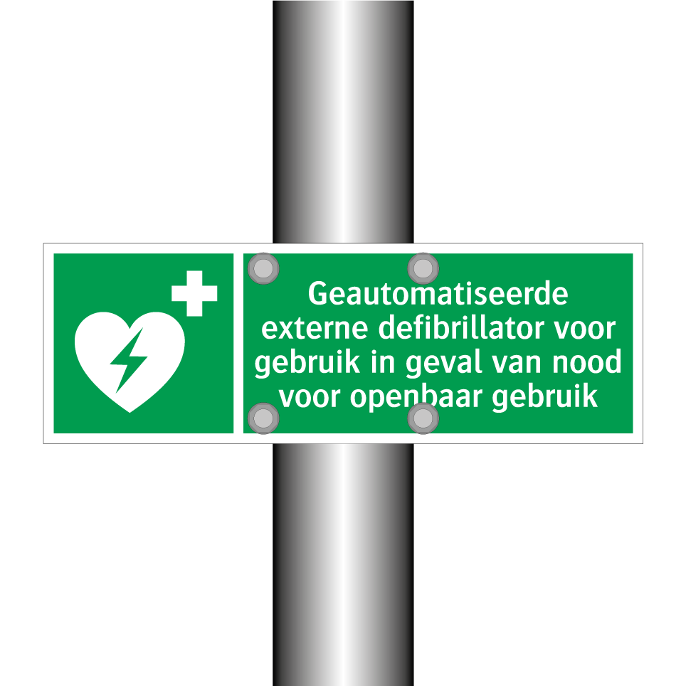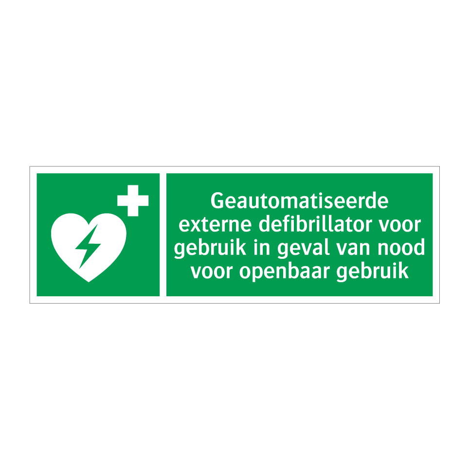 Deze noodbord is essentieel voor elke openbare ruimte waar veiligheid en snelle respons van groot belang zijn. Het bord geeft duidelijk aan waar de geautomatiseerde externe defibrillator zich bevindt, wat cruciaal is in noodsituaties. Plaats deze noodbord op goed zichtbare locaties zoals gangen, ingangen, sportfaciliteiten, kantoren en scholen. Door de opvallende groene kleur en witte tekst met symbool, is het bord gemakkelijk te herkennen en te begrijpen, zelfs in stressvolle situaties. Zorg ervoor dat iedereen snel toegang heeft tot levensreddende apparatuur door deze noodbord strategisch te plaatsen.