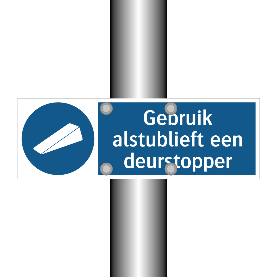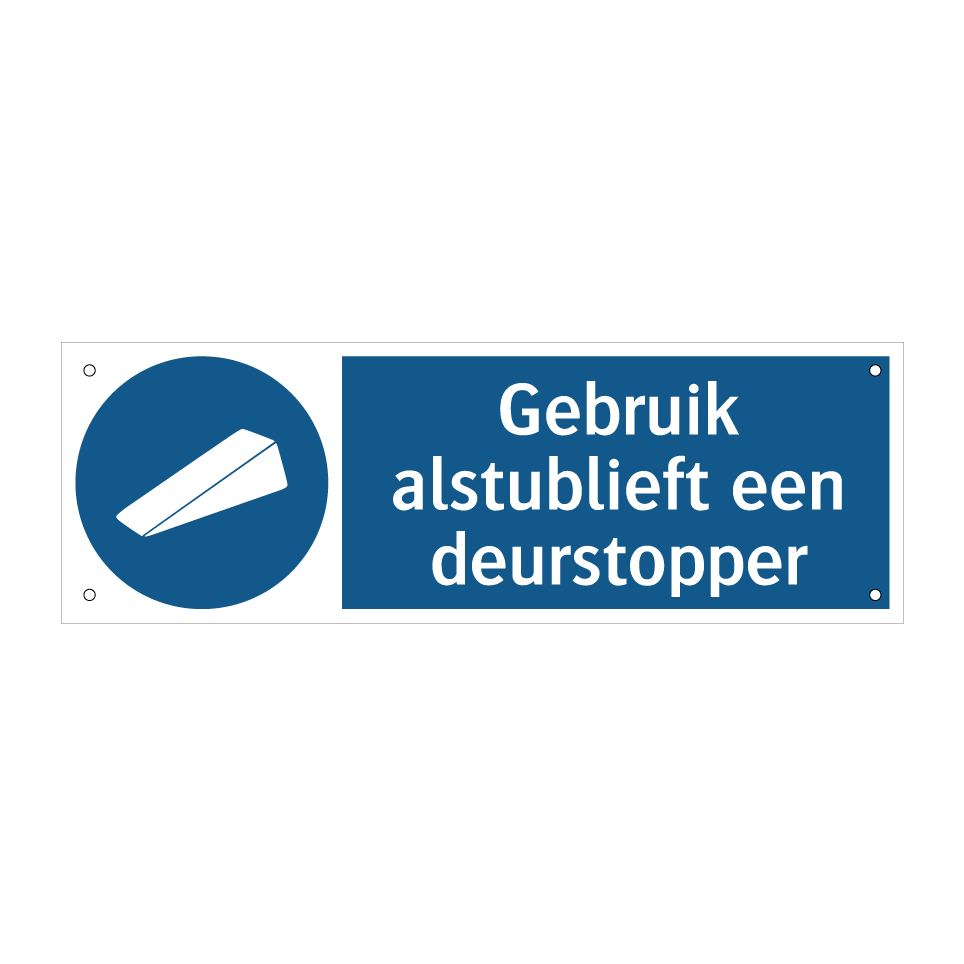 Verplichte bord met de tekst Gebruik alstublieft een deurstopper