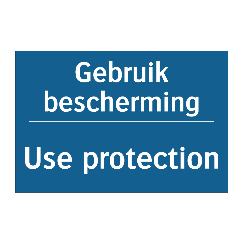 Verplichte bord met de tekst Gebruik bescherming - Use protection