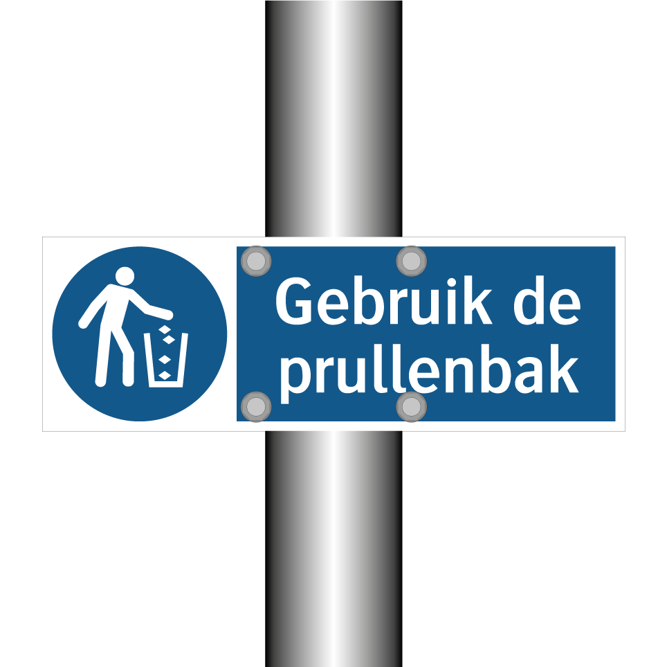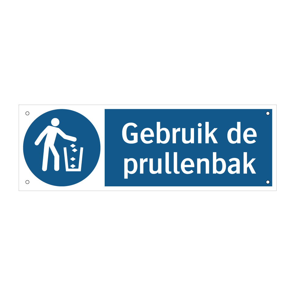 Verplichte bord met de tekst Gebruik de prullenbak