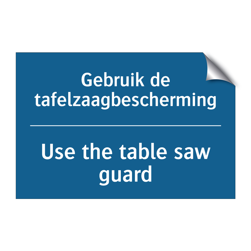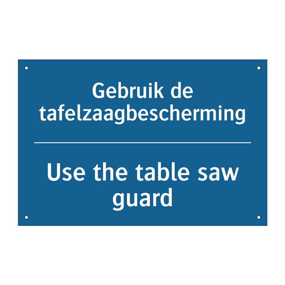 Verplichte bord met de tekst Gebruik de tafelzaagbescherming - Use the table saw guard