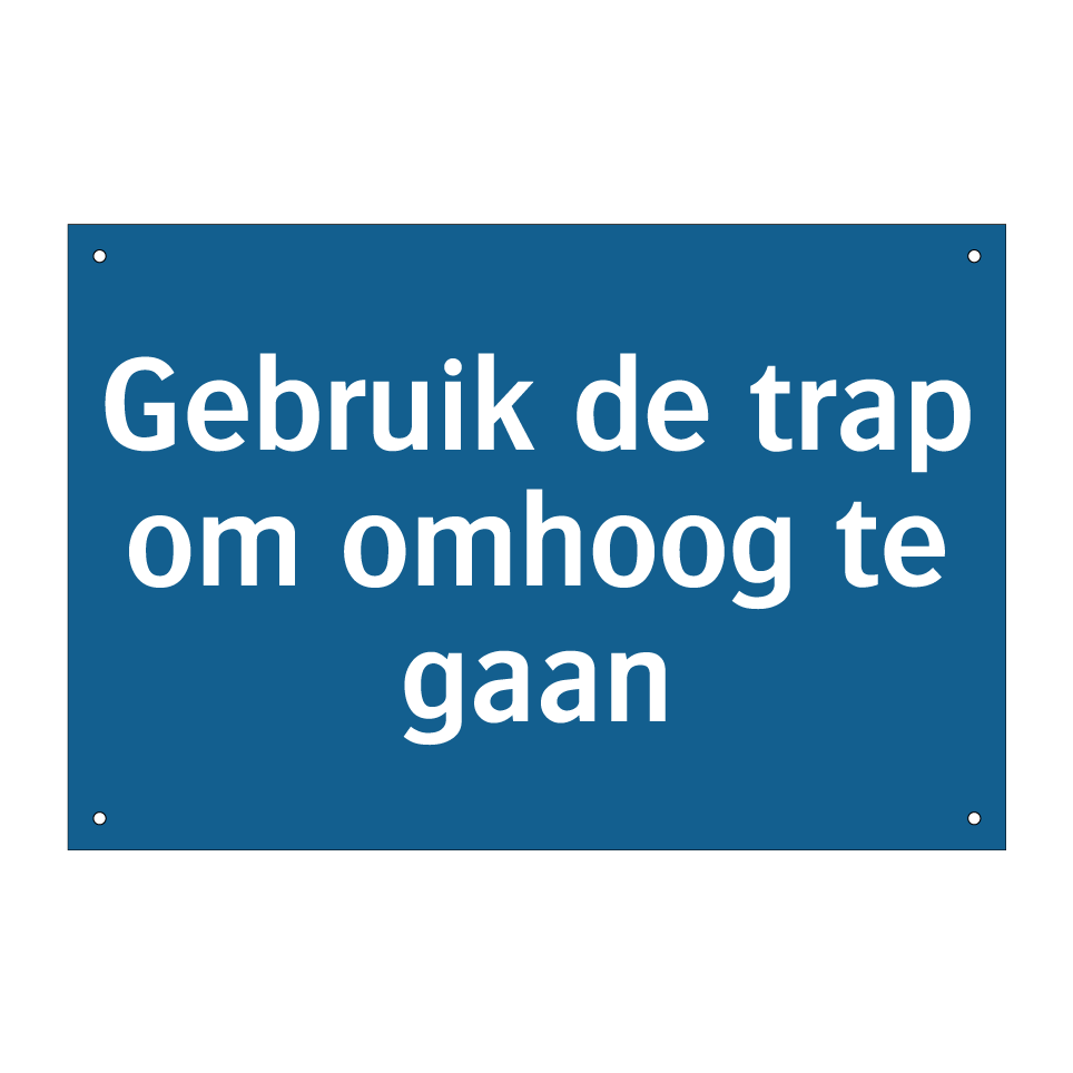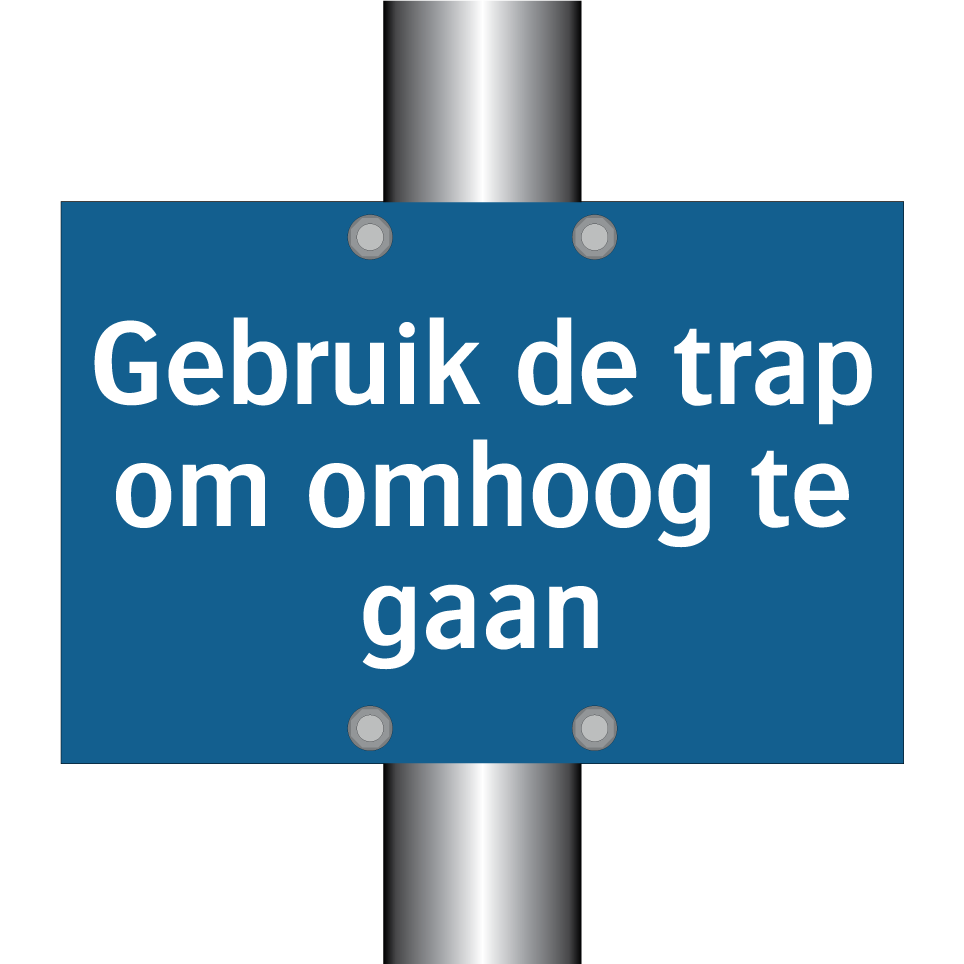 Verplichte bord met de tekst Gebruik de trap om omhoog te gaan