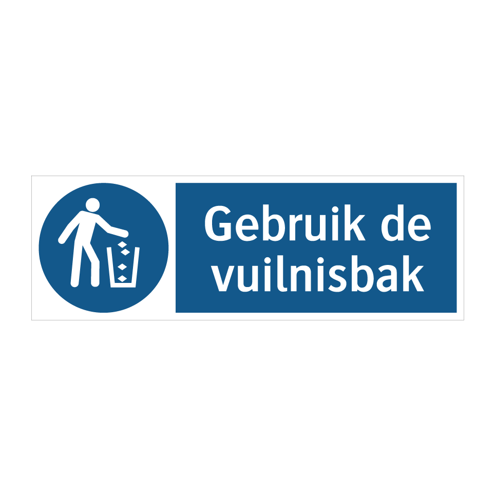 Verplichte bord met de tekst Gebruik de vuilnisbak