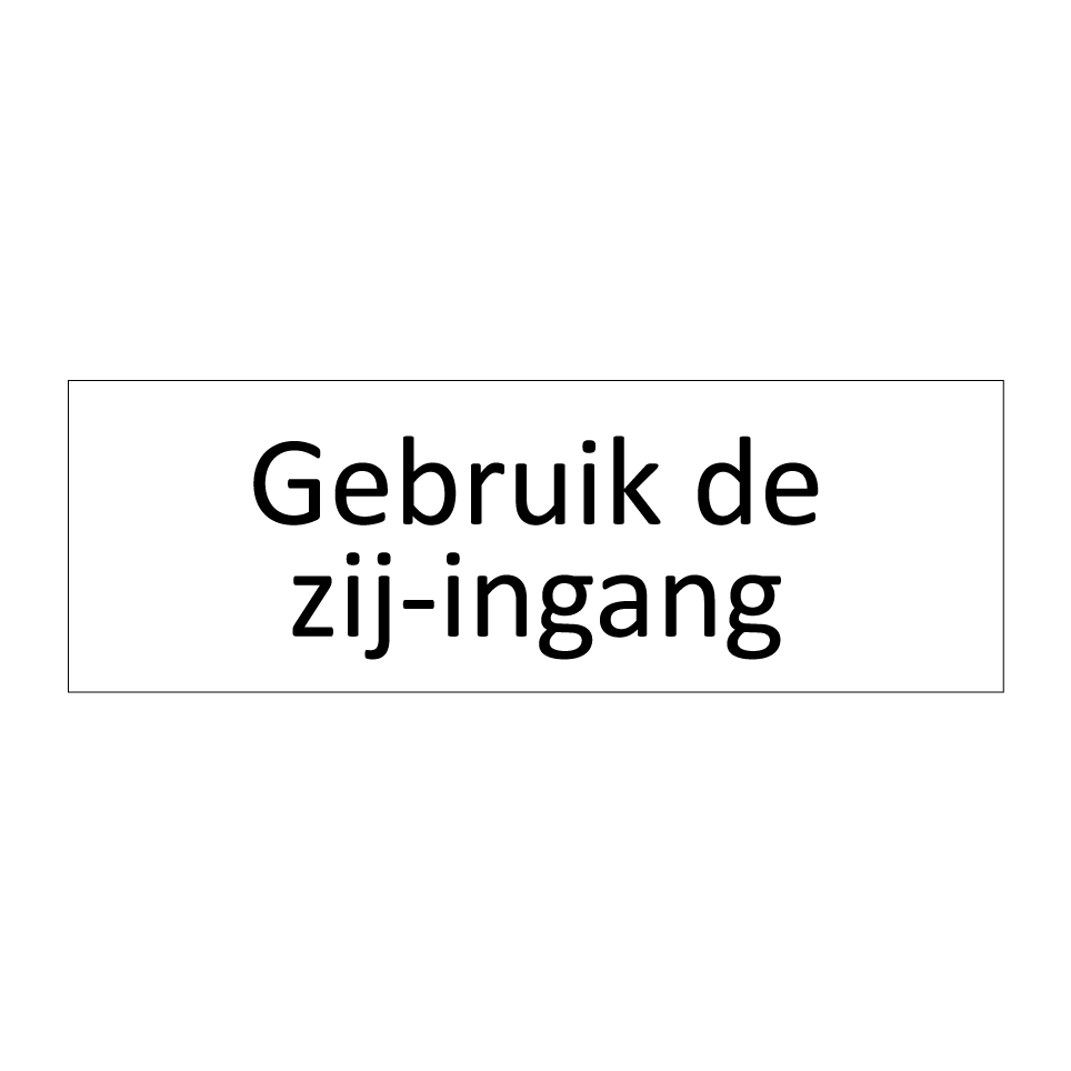 Deze bord is ideaal voor bedrijven, scholen of openbare gebouwen waar het belangrijk is om bezoekers en personeel efficiënt te leiden. Het dient als een duidelijke aanwijzing om de zij-ingang te gebruiken, wat bijdraagt aan een georganiseerde doorstroming van mensen. Perfect voor plaatsing bij hoofdingangen of op strategische punten rondom het gebouw, zorgt deze aanwijzing ervoor dat iedereen de juiste route neemt. Geschikt voor zowel binnen- als buitengebruik, verhoogt het de toegankelijkheid en veiligheid van uw locatie.