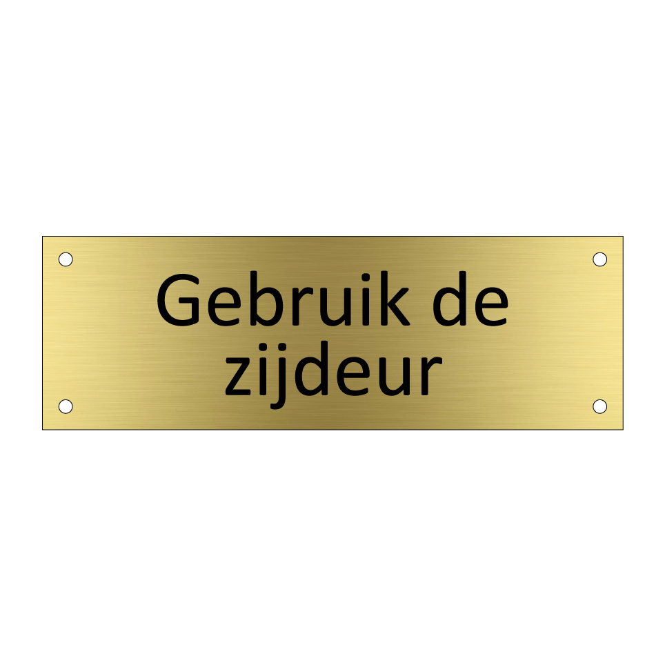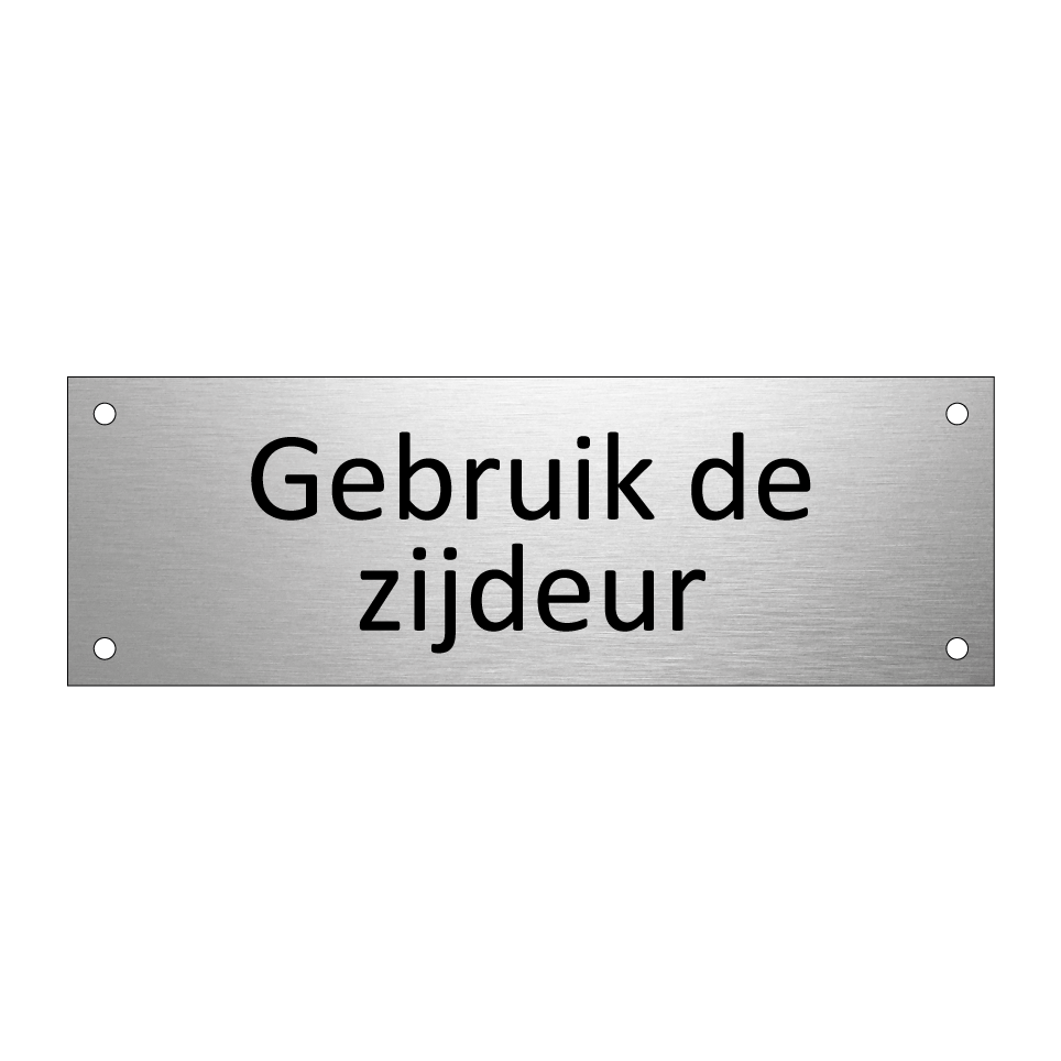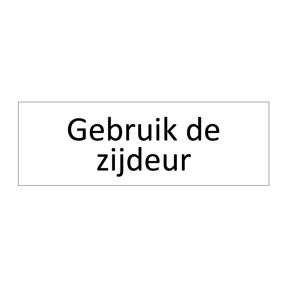 Informatiebord met tekst Gebruik de zijdeur.