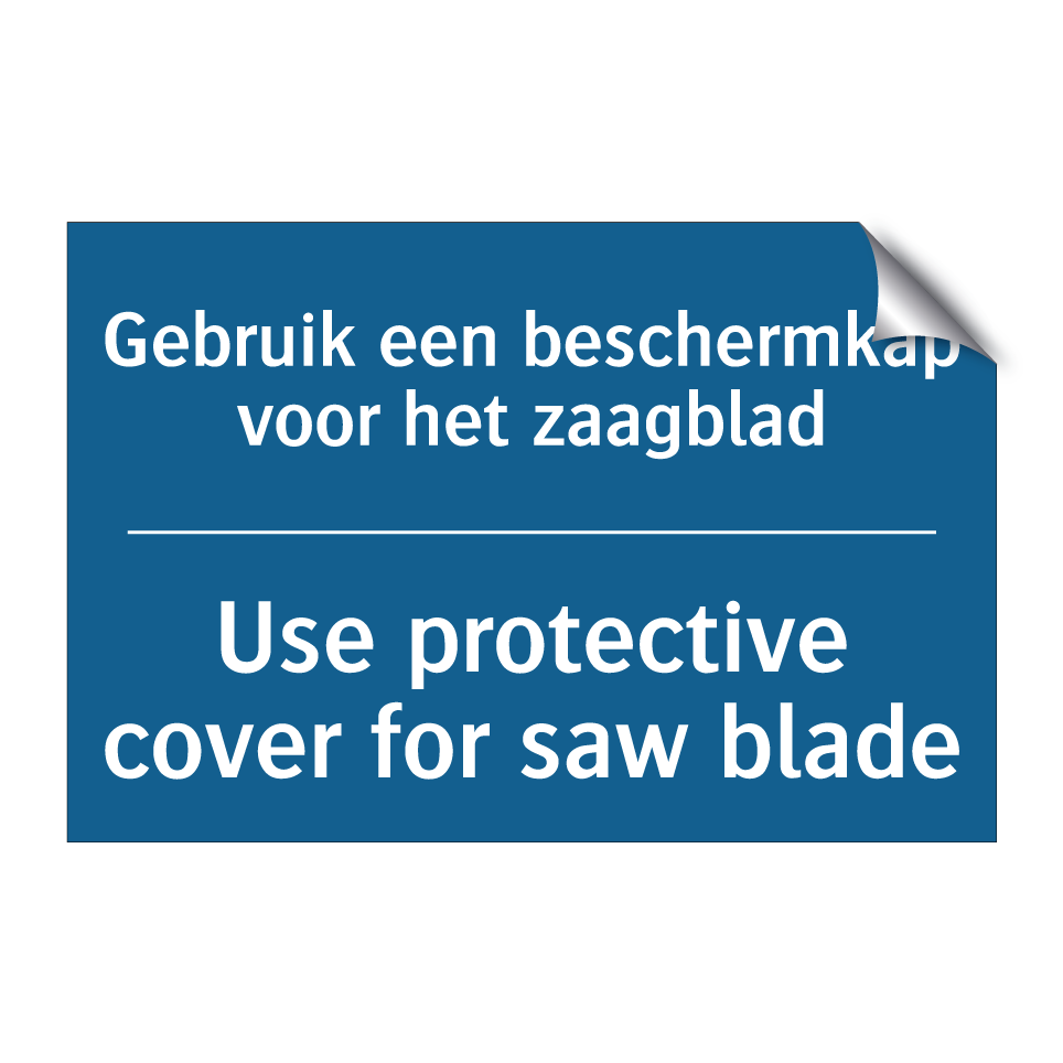 Deze verplichte bord is essentieel voor een veilige werkomgeving in werkplaatsen en fabrieken. Het bord herinnert werknemers eraan om altijd een beschermkap te gebruiken bij het werken met zaagbladen, wat het risico op ongelukken aanzienlijk vermindert. Dankzij de tweetalige tekst in zowel het Nederlands als het Engels, is het bord ideaal voor internationale omgevingen waar meerdere talen worden gesproken. Plaats dit bord op zichtbare locaties in de buurt van zaagmachines om ervoor te zorgen dat de veiligheidsrichtlijnen duidelijk worden nageleefd. Dit verplichte bord draagt bij aan een verhoogd veiligheidsbewustzijn en helpt bij het naleven van de veiligheidsvoorschriften.
