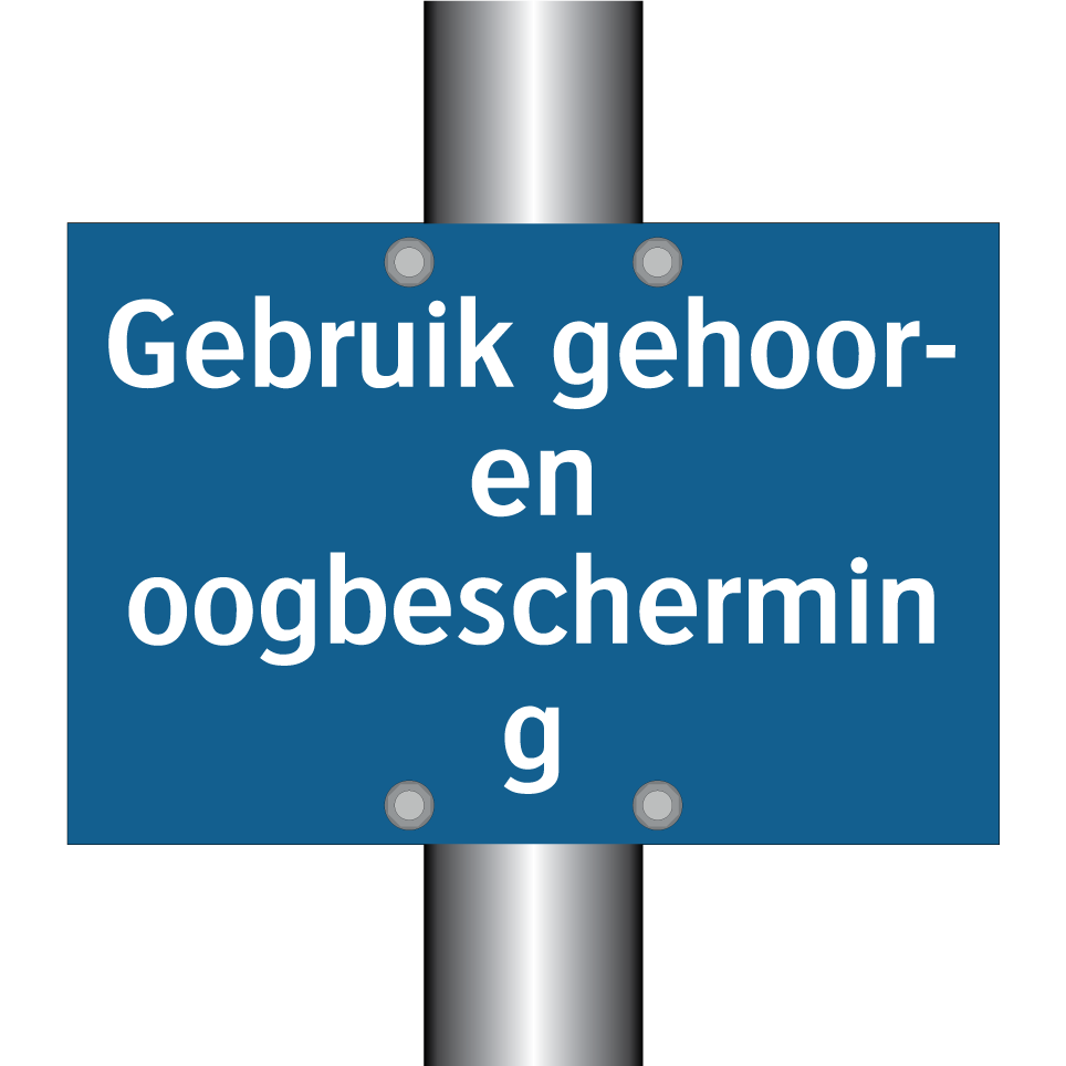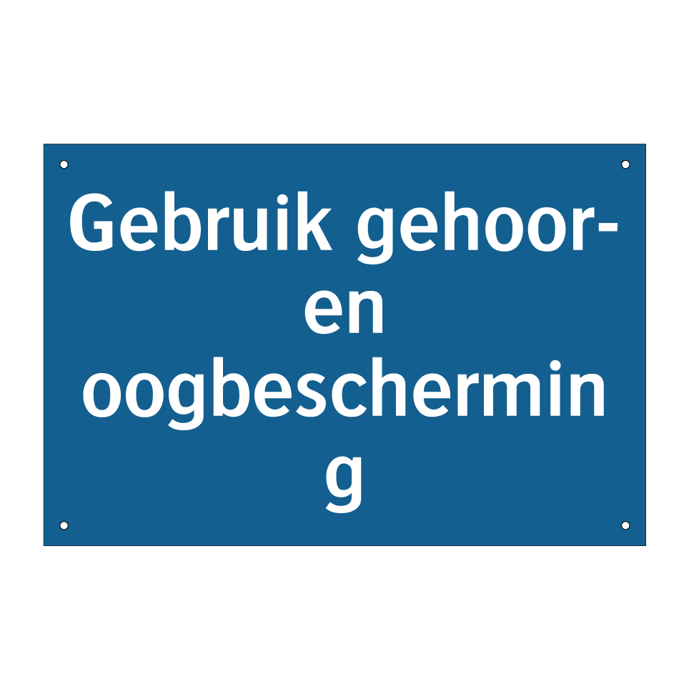 Deze verplichte bord met blauwe achtergrond en witte tekst is essentieel voor het waarborgen van de veiligheid op de werkplek. Ideaal voor gebruik in industriële omgevingen, bouwplaatsen en werkplaatsen waar gehoor- en oogbescherming verplicht is. Plaats deze bord bij ingangen van lawaaierige zones, nabij machines of in gebieden waar gevaarlijke werkzaamheden plaatsvinden. Door deze duidelijke en opvallende signalisatie worden werknemers en bezoekers direct geïnformeerd over de noodzaak van beschermende uitrusting, wat bijdraagt aan een veilige werkomgeving. Verhoog de veiligheid en voorkom ongevallen door deze verplichte bord strategisch te plaatsen.