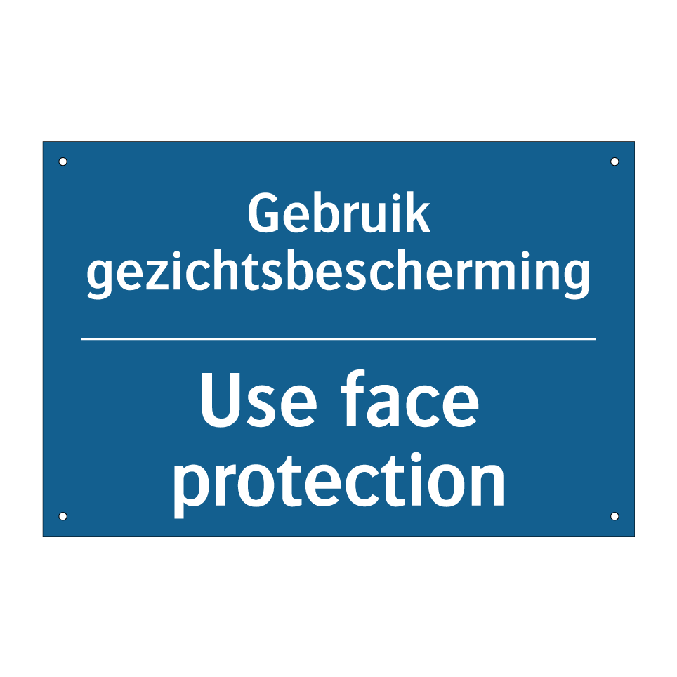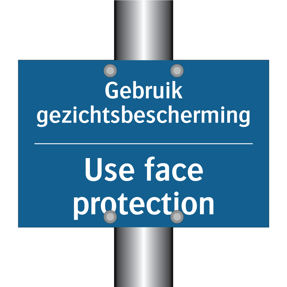 Verplichte bord met de tekst Gebruik gezichtsbescherming - Use face protection