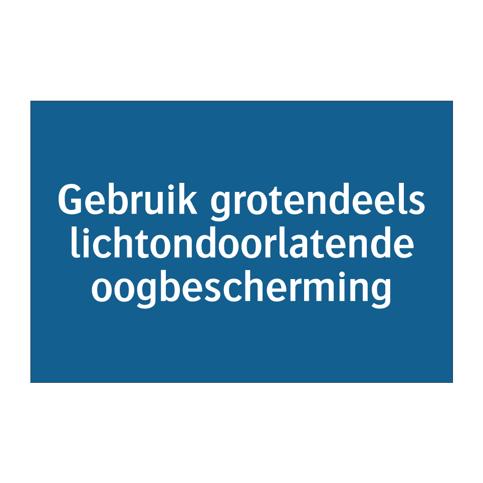 Verplichte bord met de tekst Gebruik grotendeels lichtondoorlatende oogbescherming