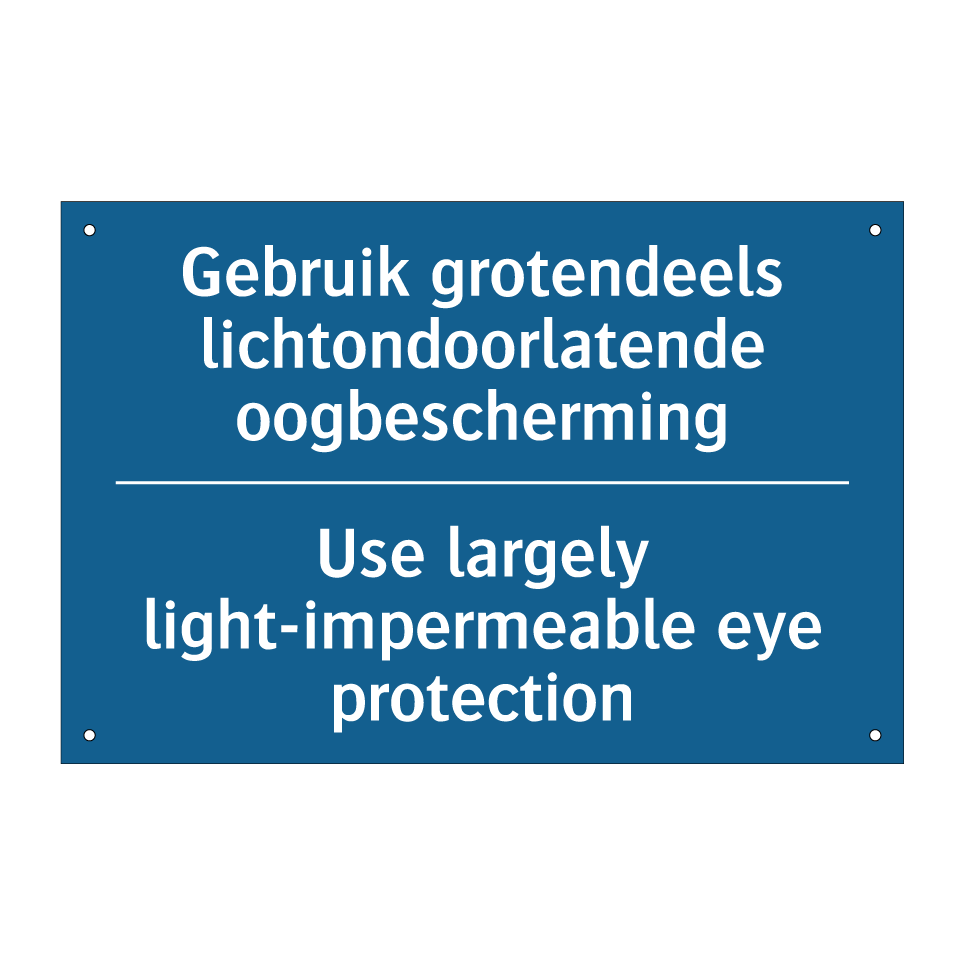 Verplichte bord met de tekst Gebruik grotendeels lichtondoorlatende oogbescherming - Use largely light-impermeable eye protection
