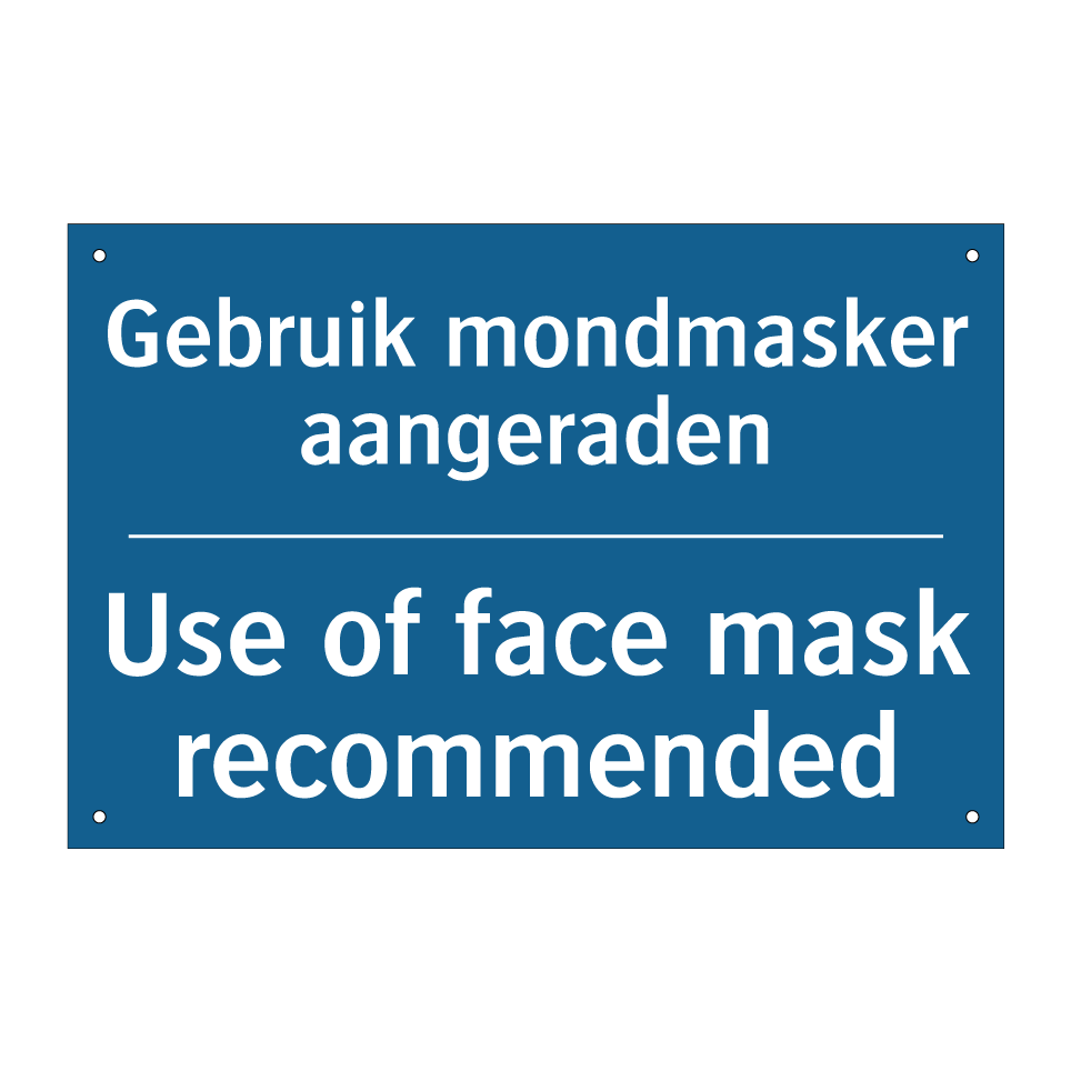 Verplichte bord met de tekst Gebruik mondmasker aangeraden - Use of face mask recommended