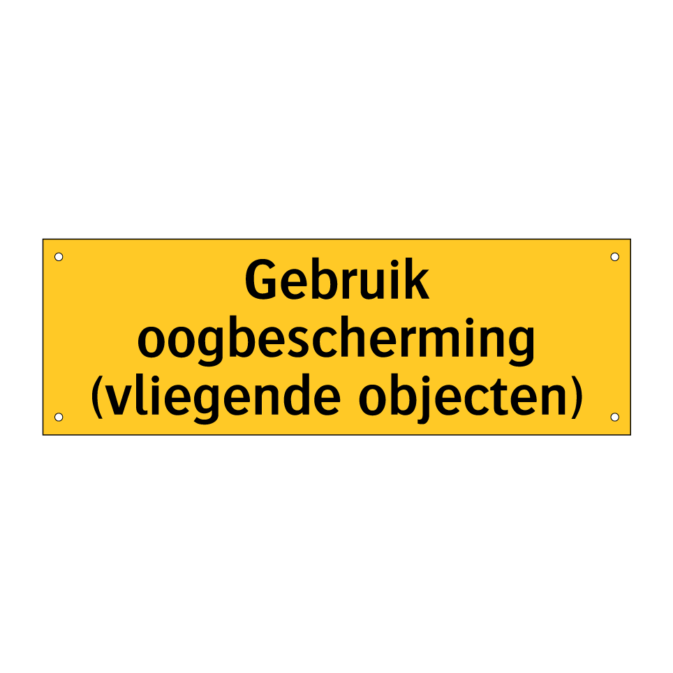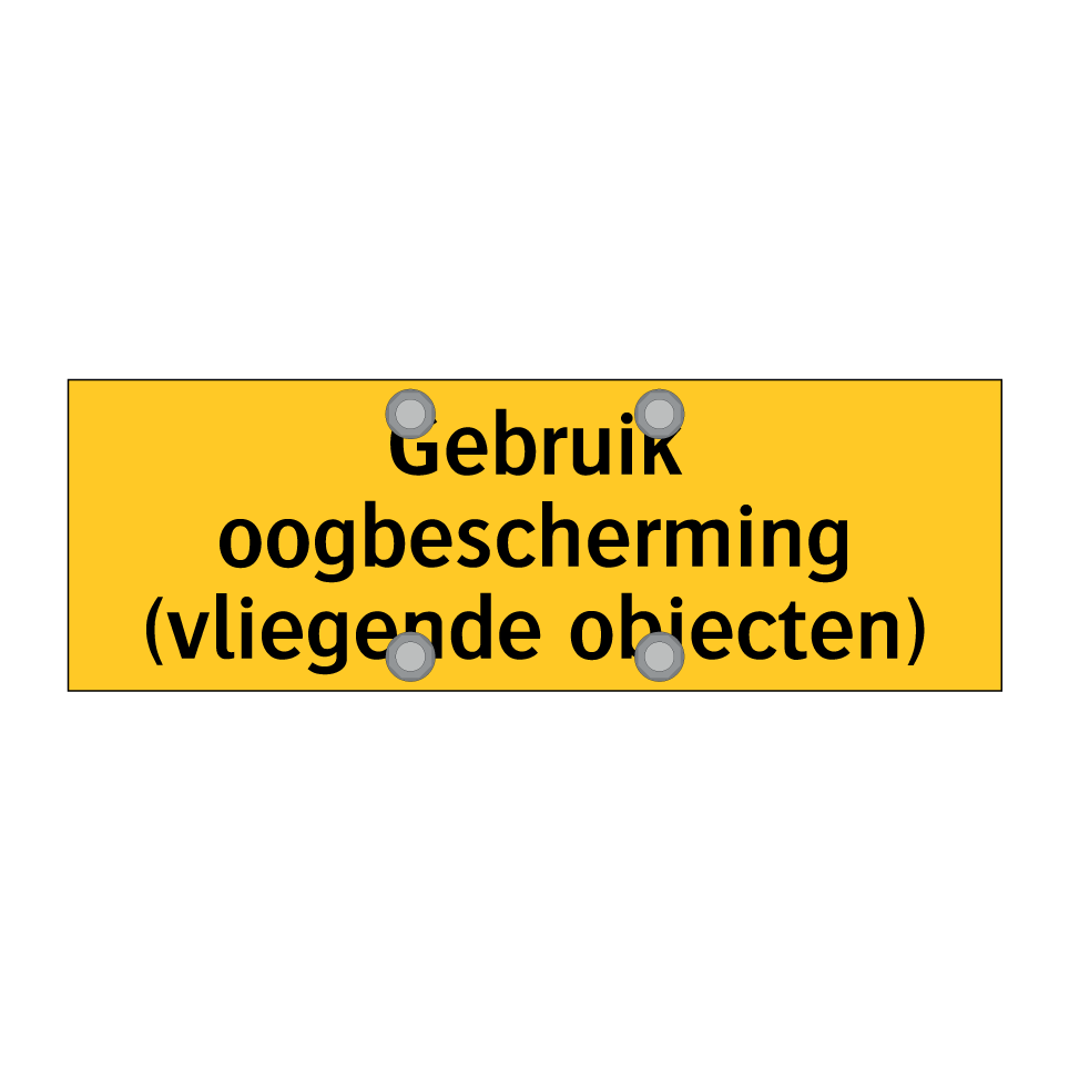 Waarschuwingsbord met de tekst Gebruik oogbescherming (vliegende objecten)