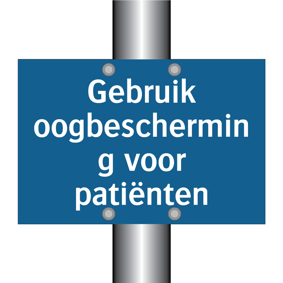 Verplichte bord met de tekst Gebruik oogbescherming voor patiënten