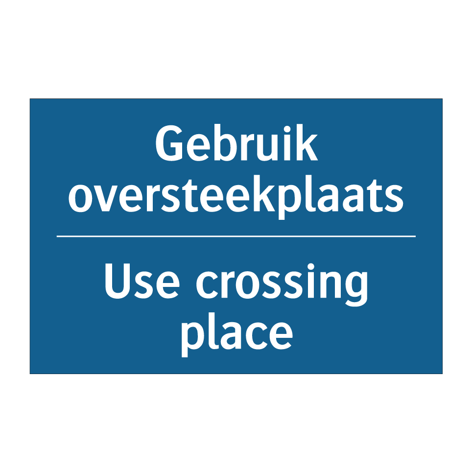 Verplichte bord met de tekst Gebruik oversteekplaats - Use crossing place