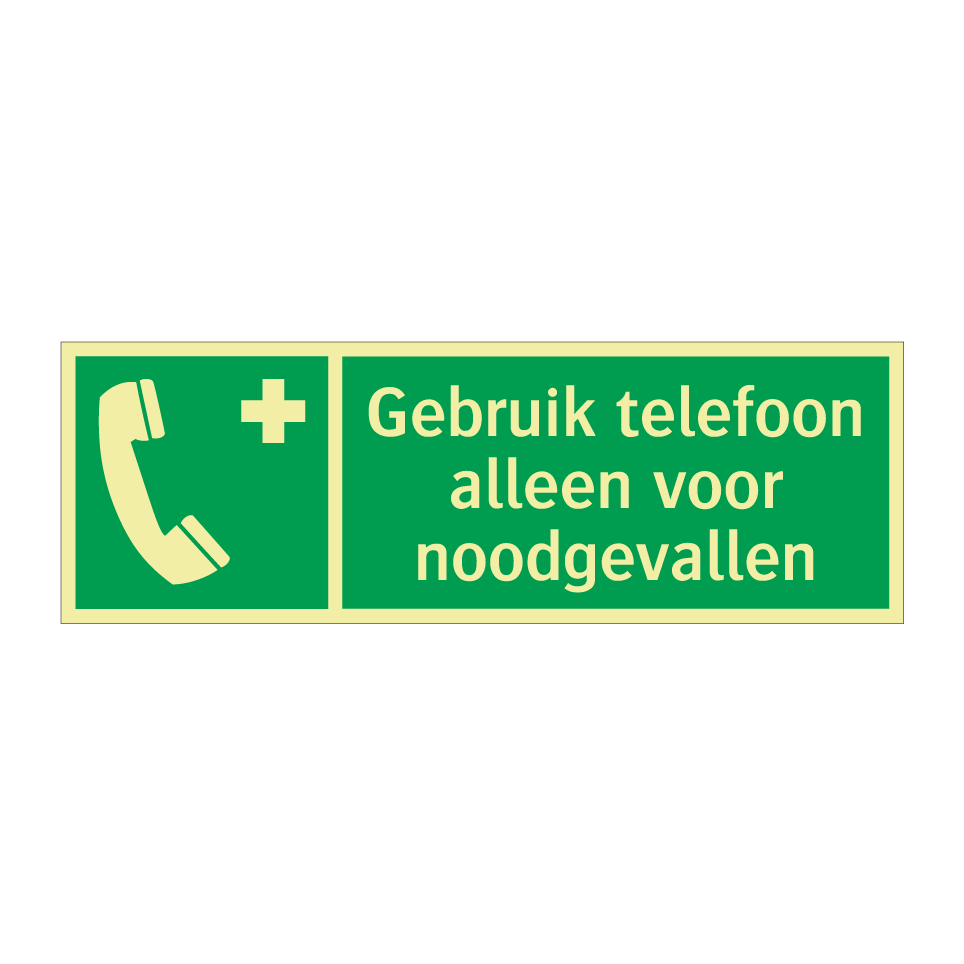 Noodbord met tekst Gebruik telefoon alleen voor noodgevallen