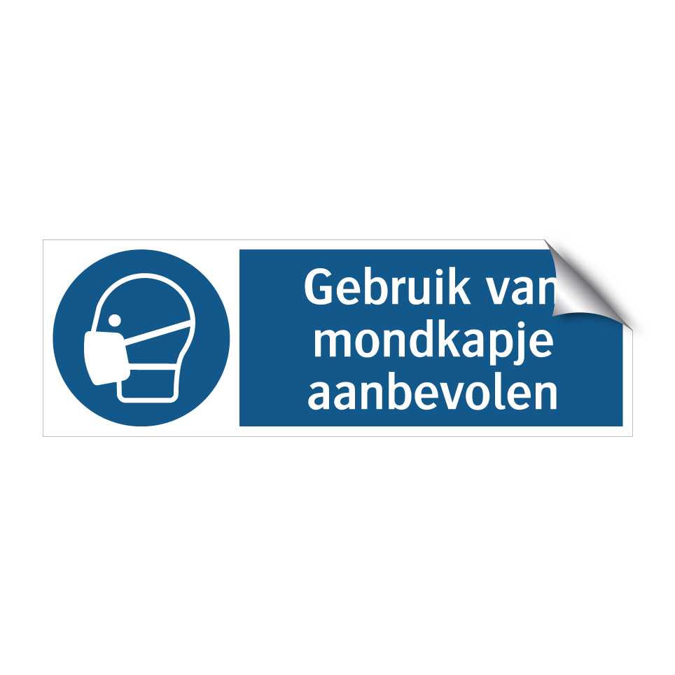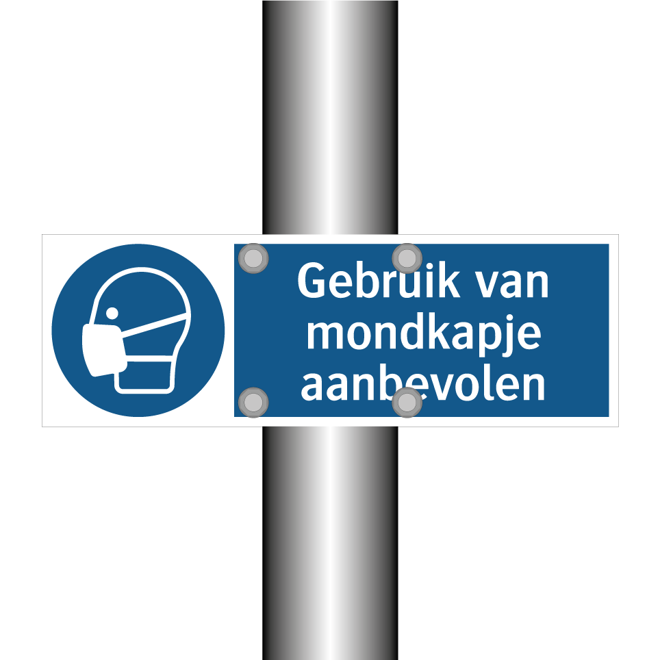 Verplichte bord met de tekst Gebruik van mondkapje aanbevolen