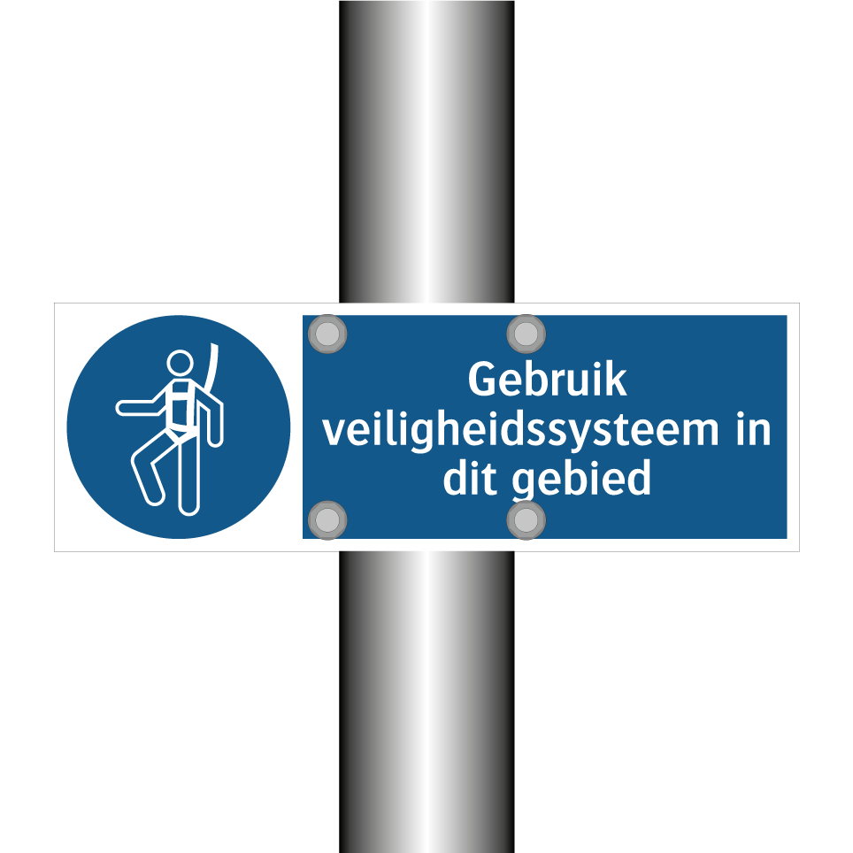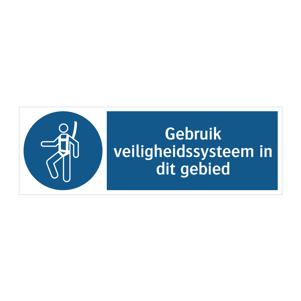 Verplichte bord met de tekst Gebruik veiligheidssysteem in dit gebied