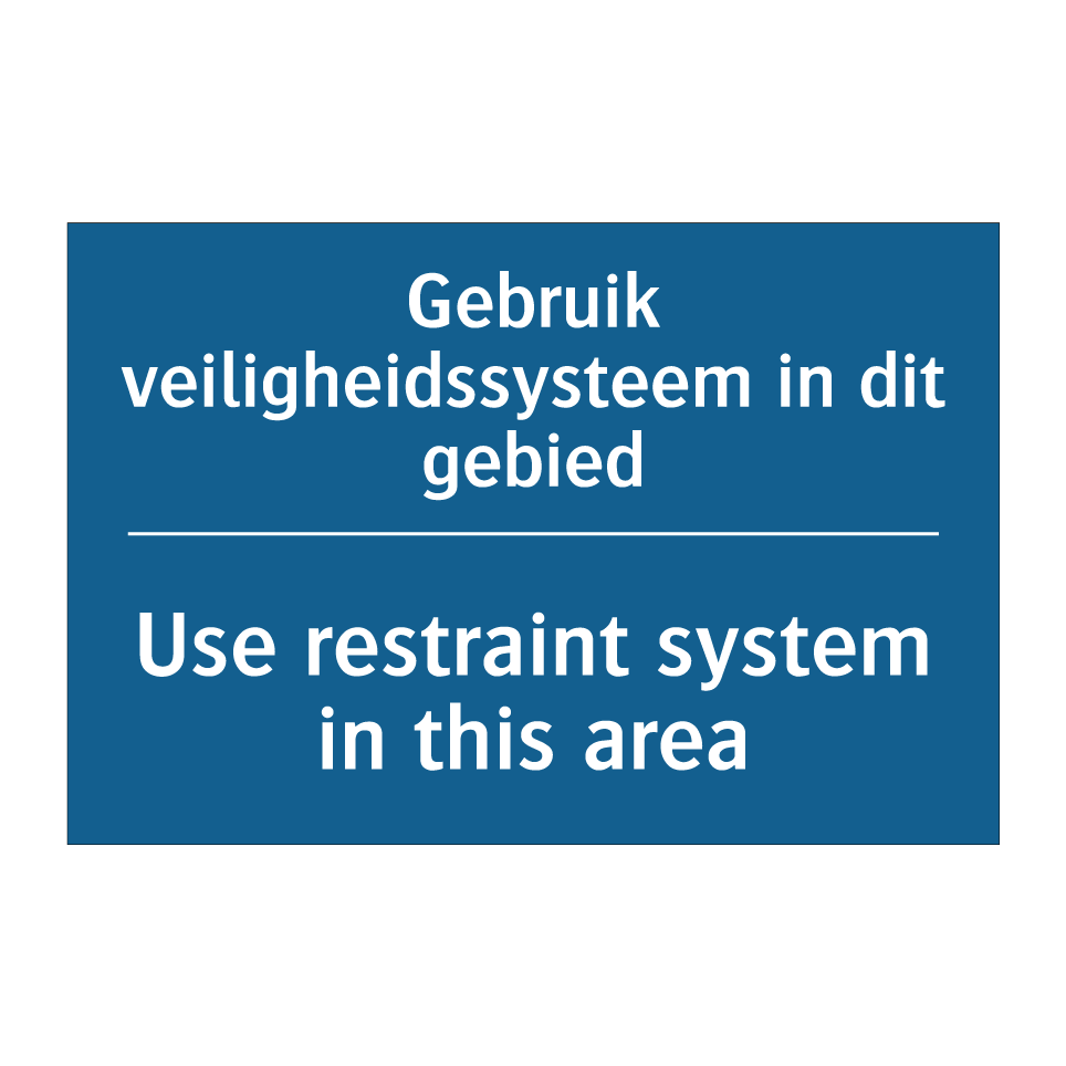 Verplichte bord met de tekst Gebruik veiligheidssysteem in dit gebied - Use restraint system in this area