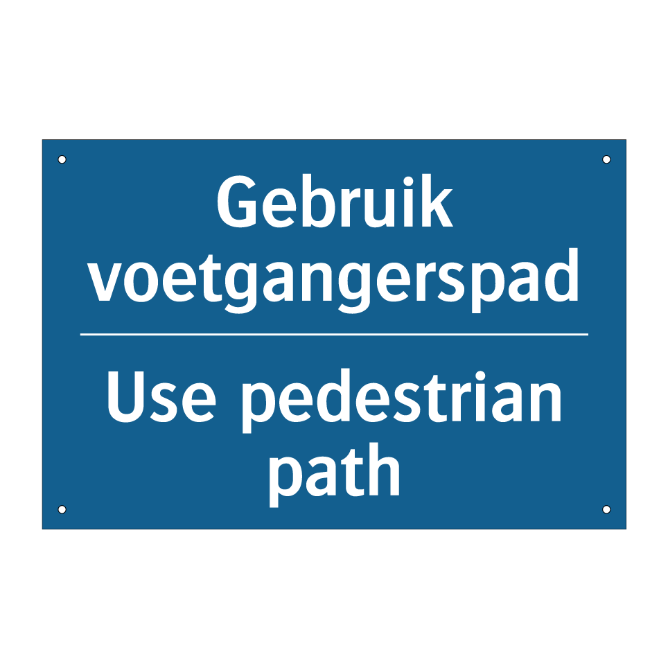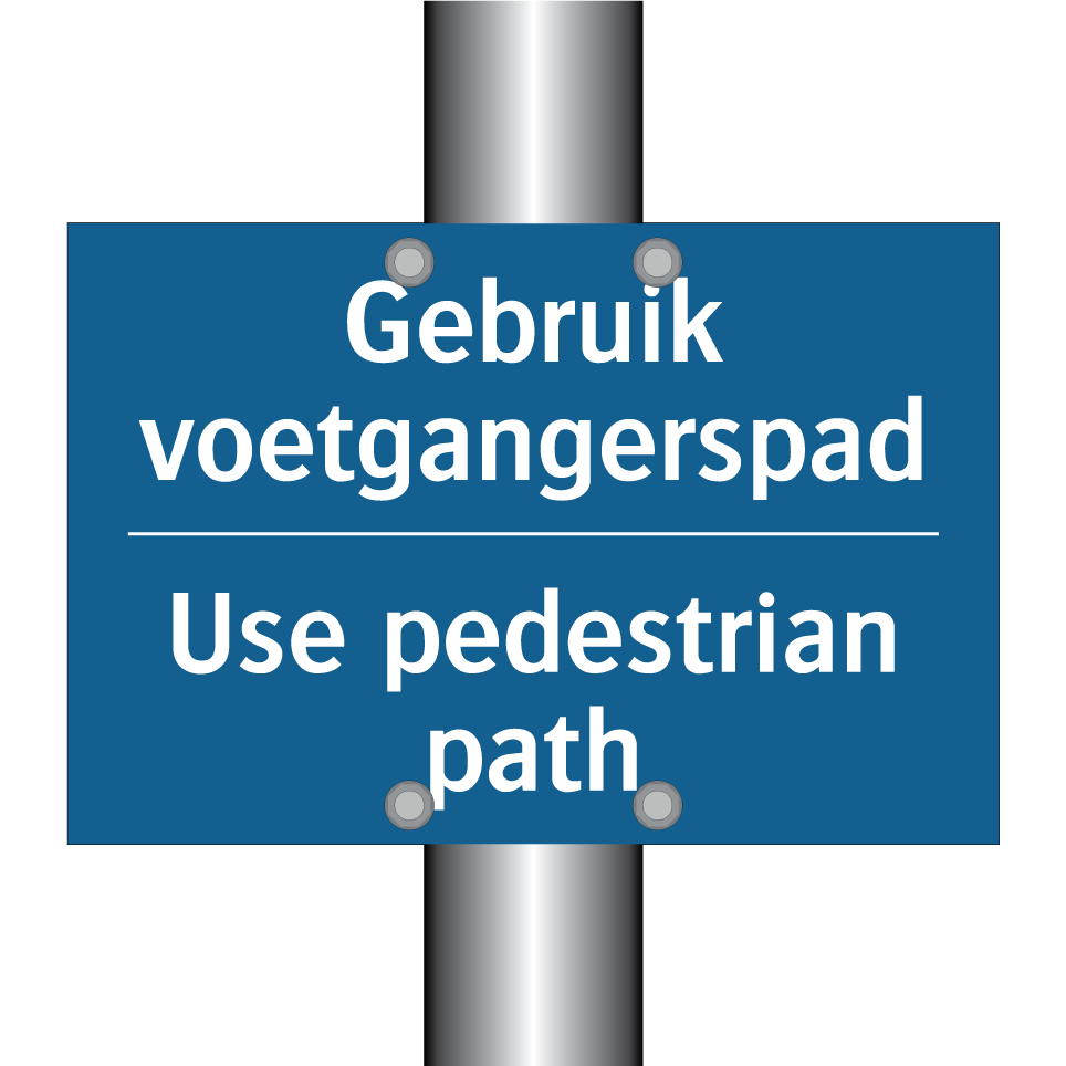 Verplichte bord met de tekst Gebruik voetgangerspad - Use pedestrian path