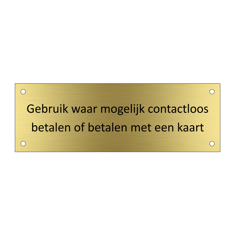 Informatiebord met tekst Gebruik waar mogelijk contactloos betalen of betalen met een kaart.