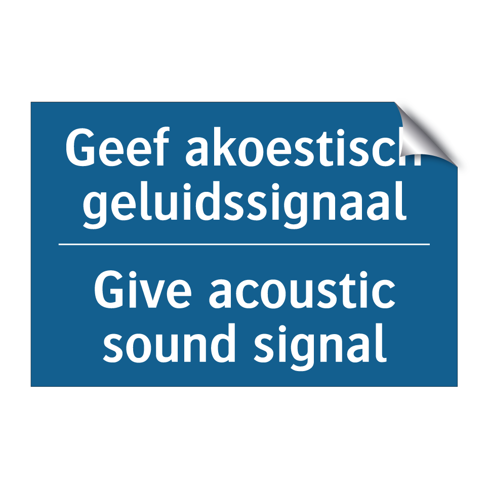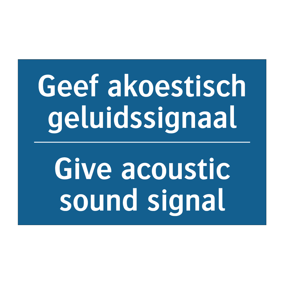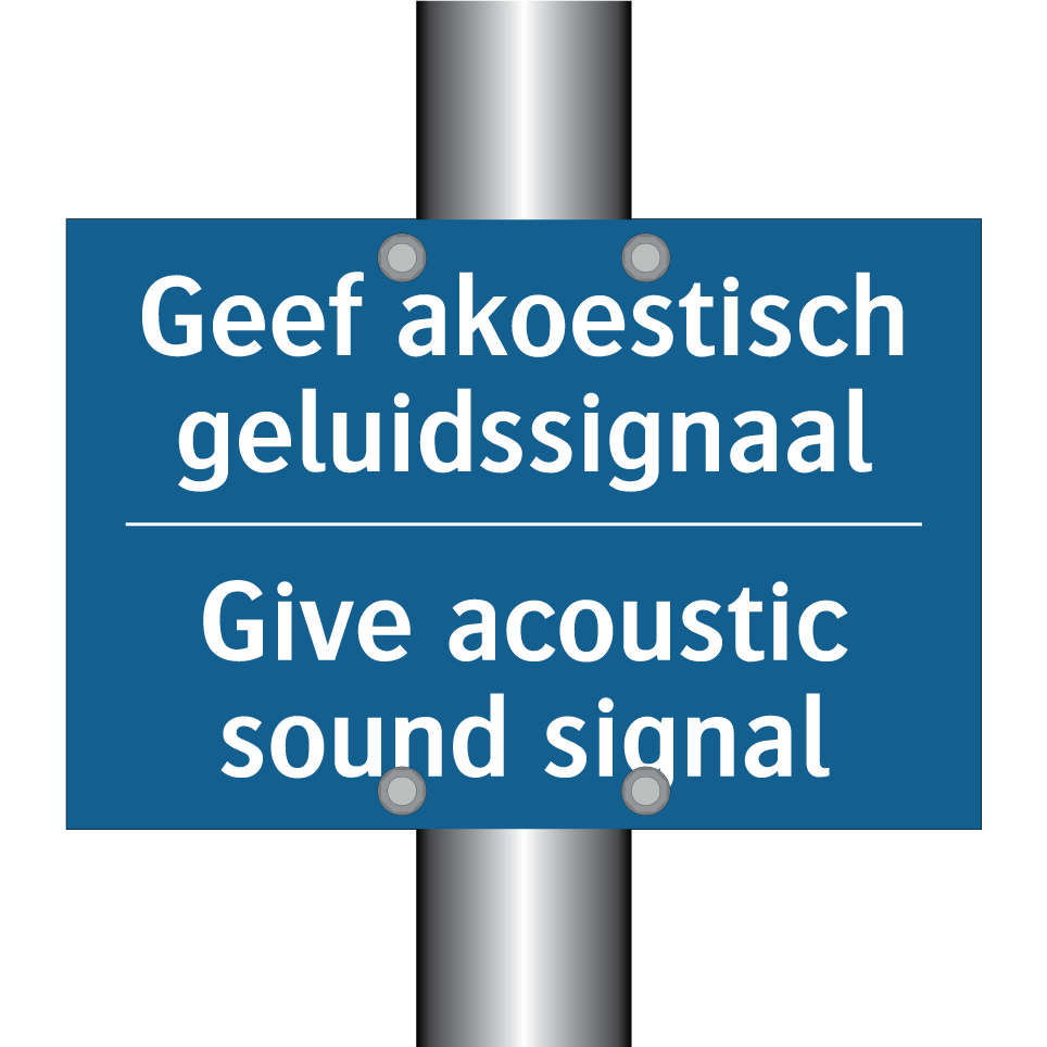 Verplichte bord met de tekst Geef akoestisch geluidssignaal - Give acoustic sound signal