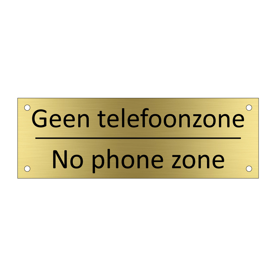 Informatiebord met tekst in het nederlands en engels. Dit bord luidt: Geen telefoonzone evenals met de engelse vertaling No phone zone.