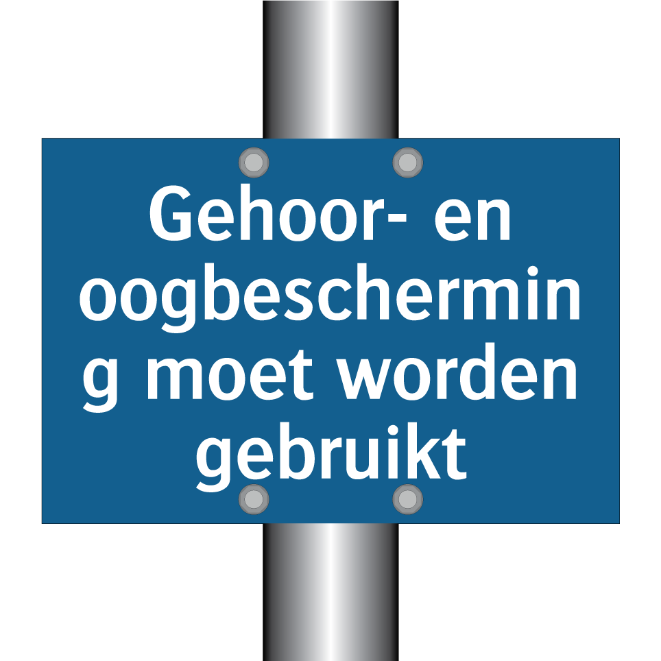 Verplichte bord met de tekst Gehoor- en oogbescherming moet worden gebruikt