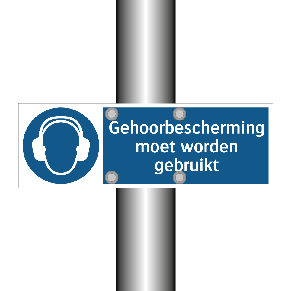 Verplichte bord met de tekst Gehoorbescherming moet worden gebruikt