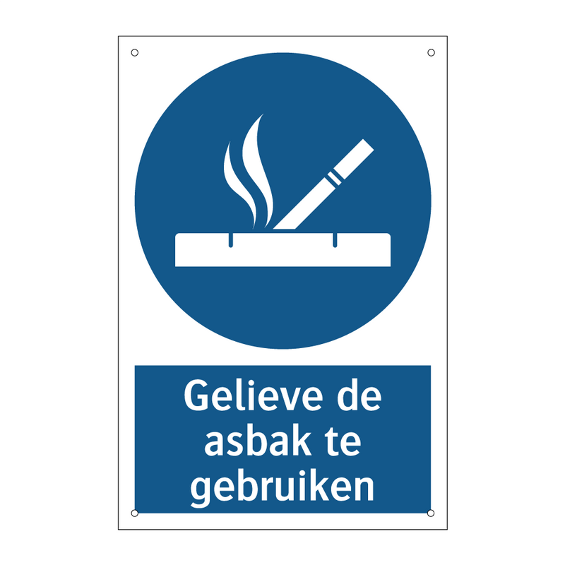 Verplichte bord met de tekst Gelieve de asbak te gebruiken
