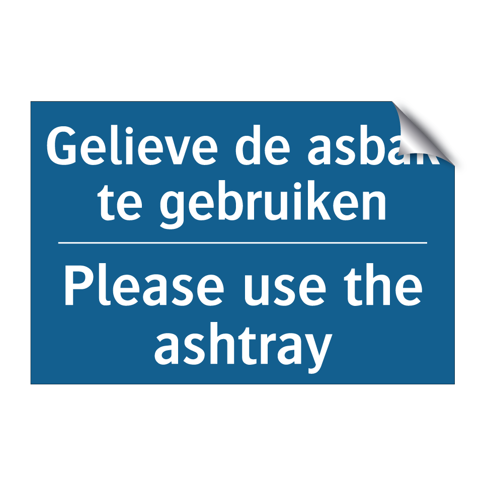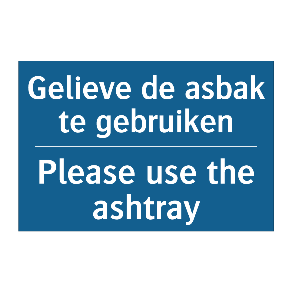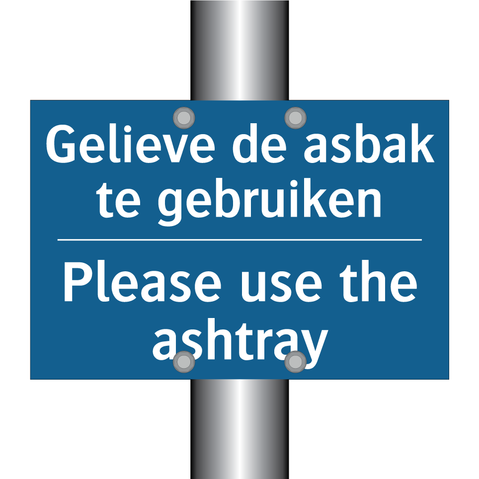 Verplichte bord met de tekst Gelieve de asbak te gebruiken - Please use the ashtray