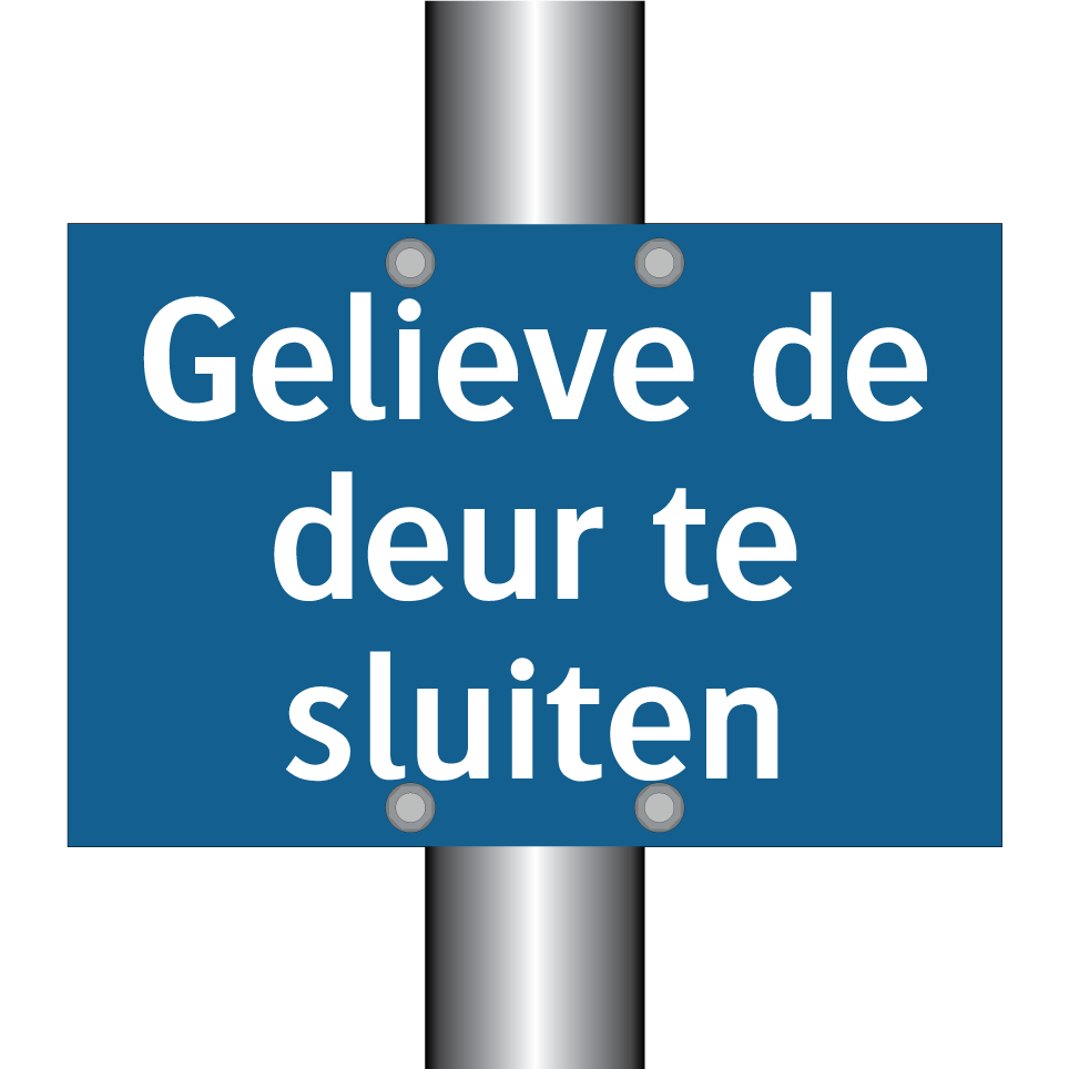 Verplichte bord met de tekst Gelieve de deur te sluiten