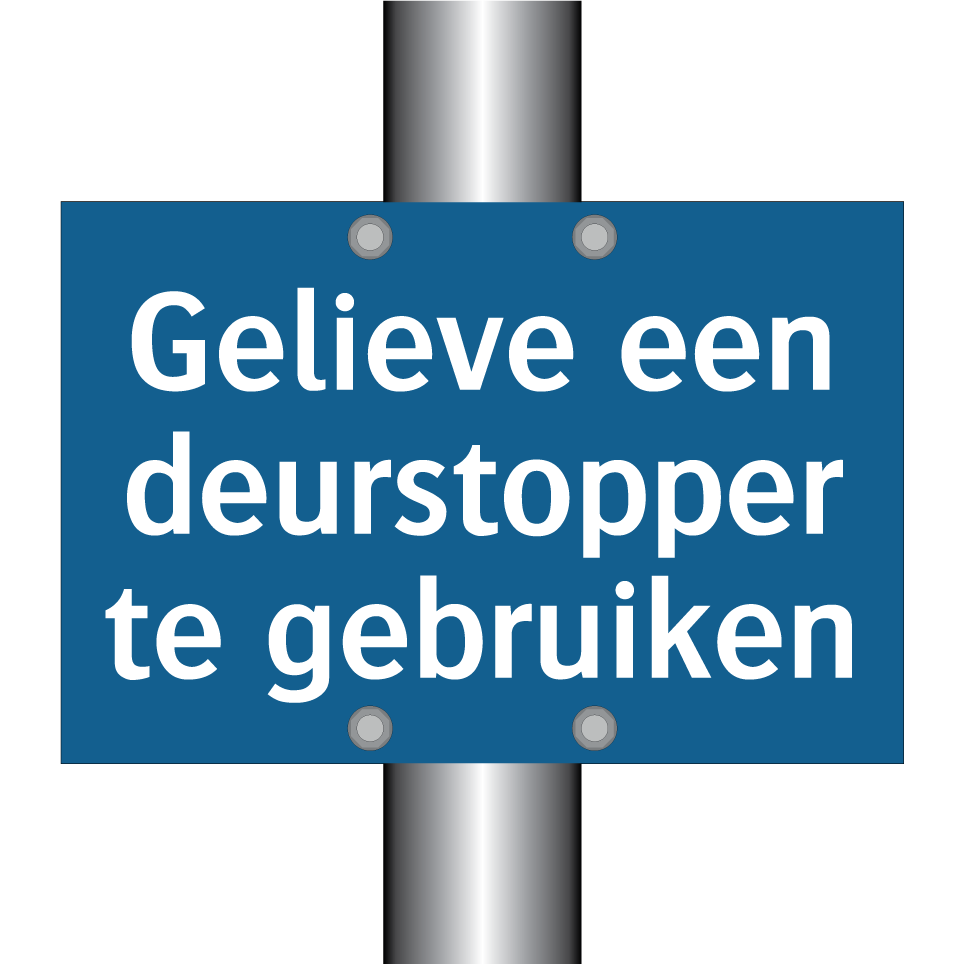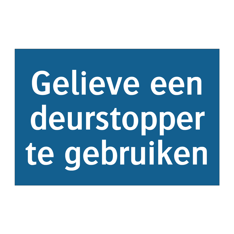 Verplichte bord met de tekst Gelieve een deurstopper te gebruiken