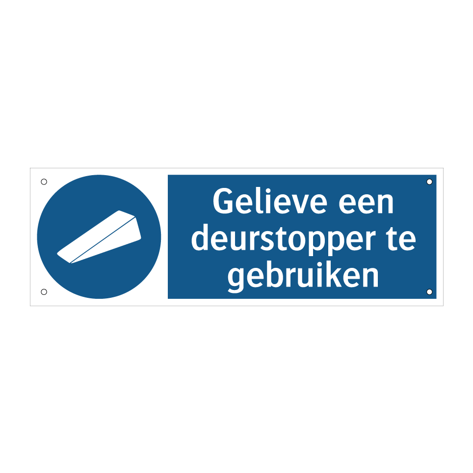Verplichte bord met de tekst Gelieve een deurstopper te gebruiken