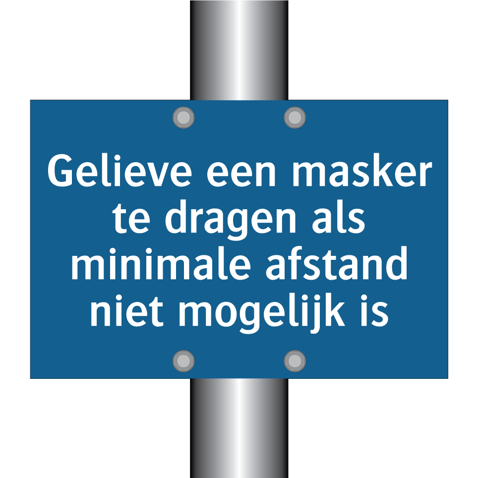 Verplichte bord met de tekst Gelieve een masker te dragen als minimale afstand niet mogelijk is