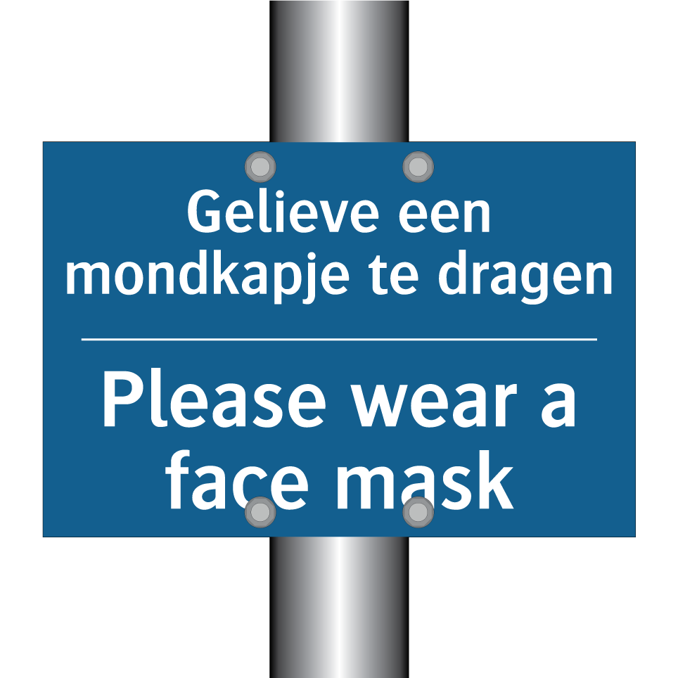 Verplichte bord met de tekst Gelieve een mondkapje te dragen - Please wear a face mask