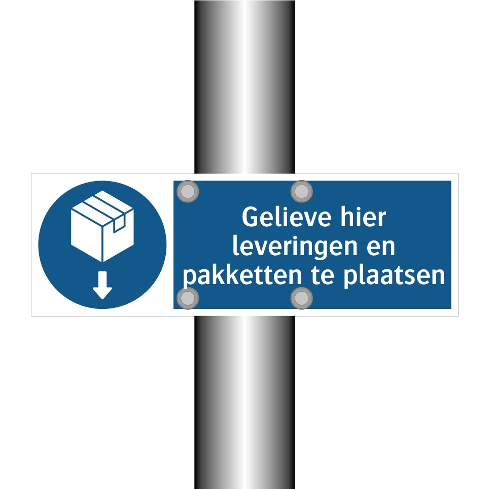Verplichte bord met de tekst Gelieve hier leveringen en pakketten te plaatsen
