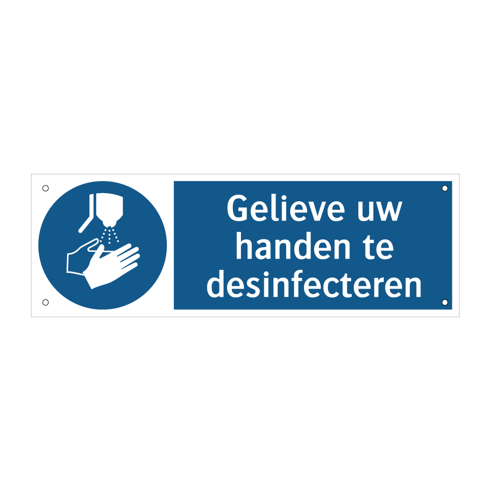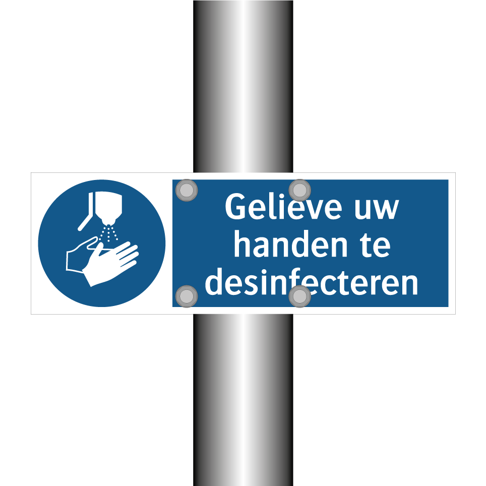Verplichte bord met de tekst Gelieve uw handen te desinfecteren