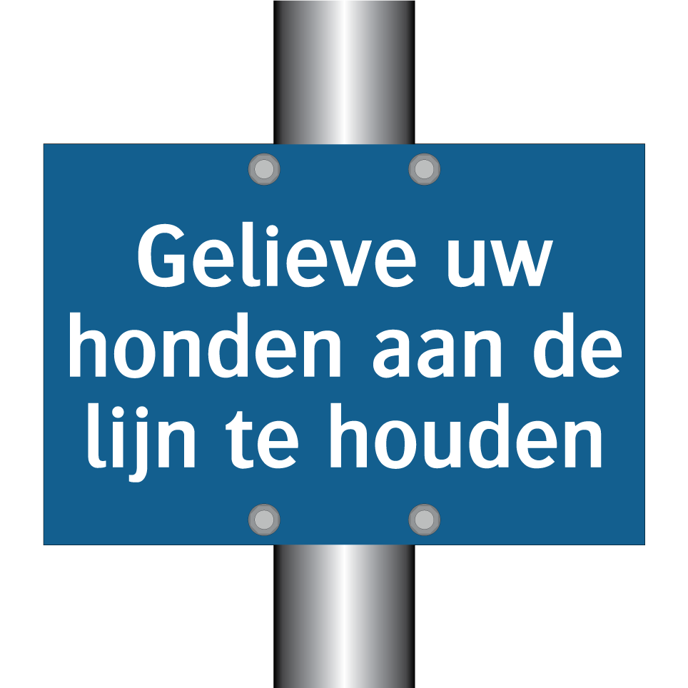 Verplichte bord met de tekst Gelieve uw honden aan de lijn te houden