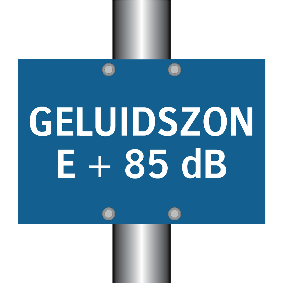Verplichte bord met de tekst GELUIDSZONE + 85 dB