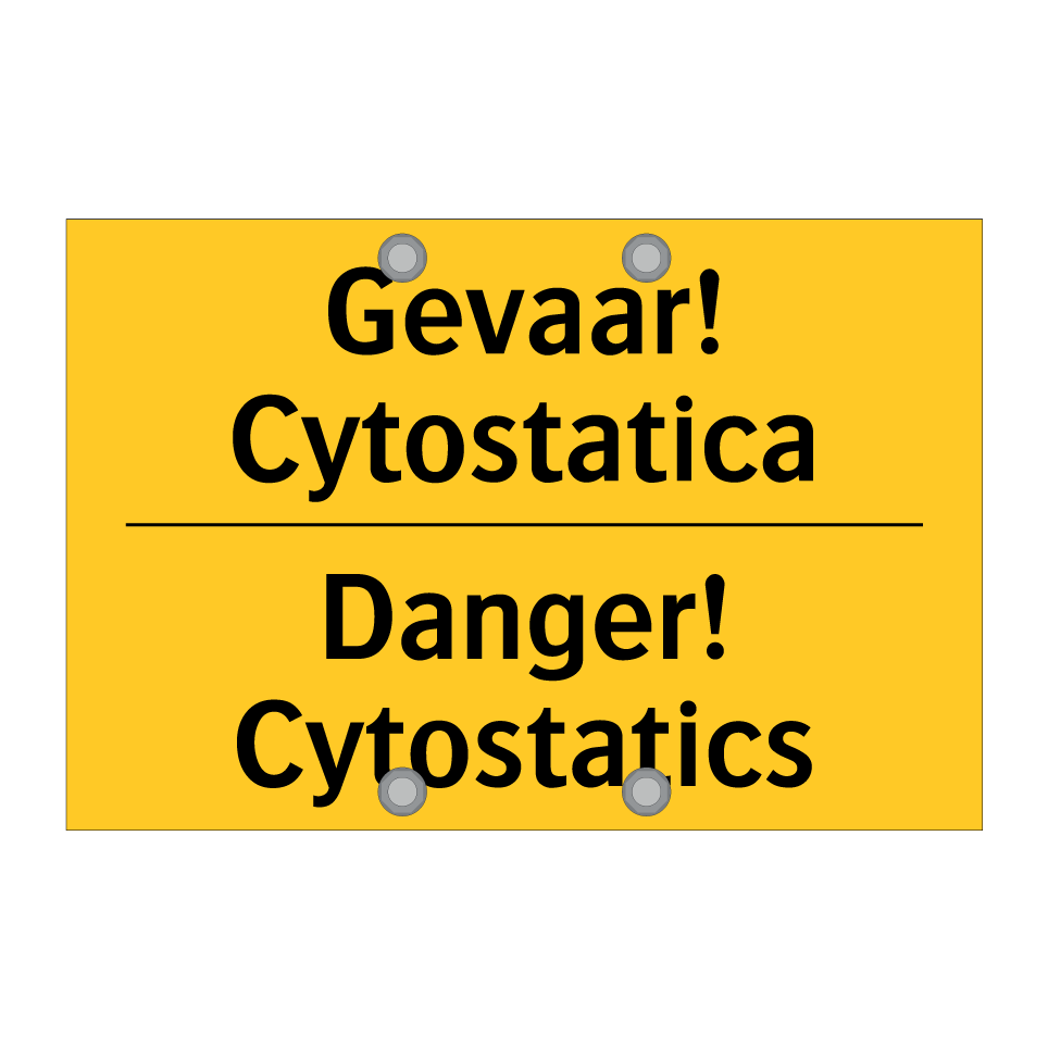 Waarschuwingsbord met de tekst Gevaar! Cytostatica / Danger! Cytostatics
