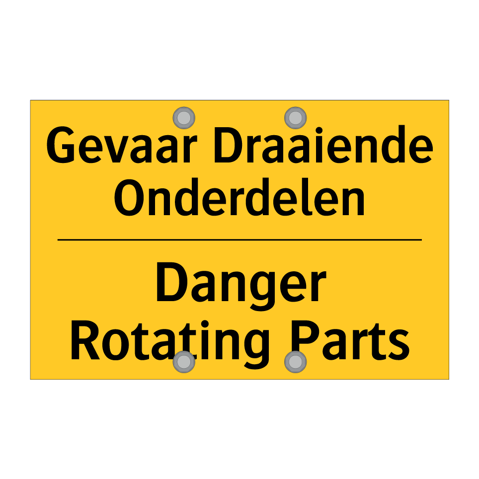 Waarschuwingsbord met de tekst Gevaar Draaiende Onderdelen / Danger Rotating Parts