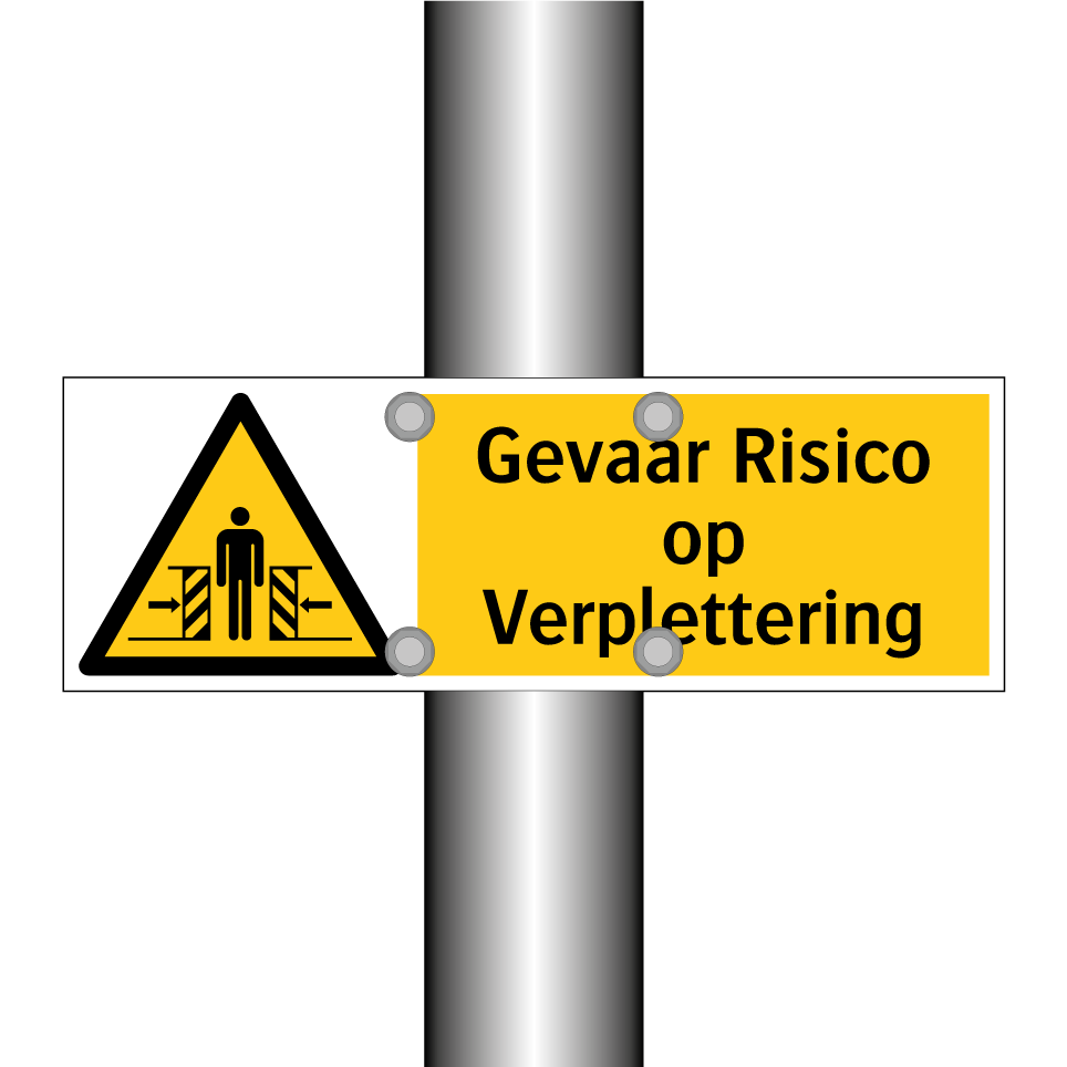Waarschuwingsbord met de tekst Gevaar Risico op Verplettering