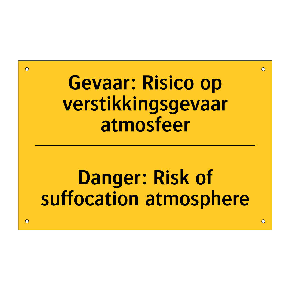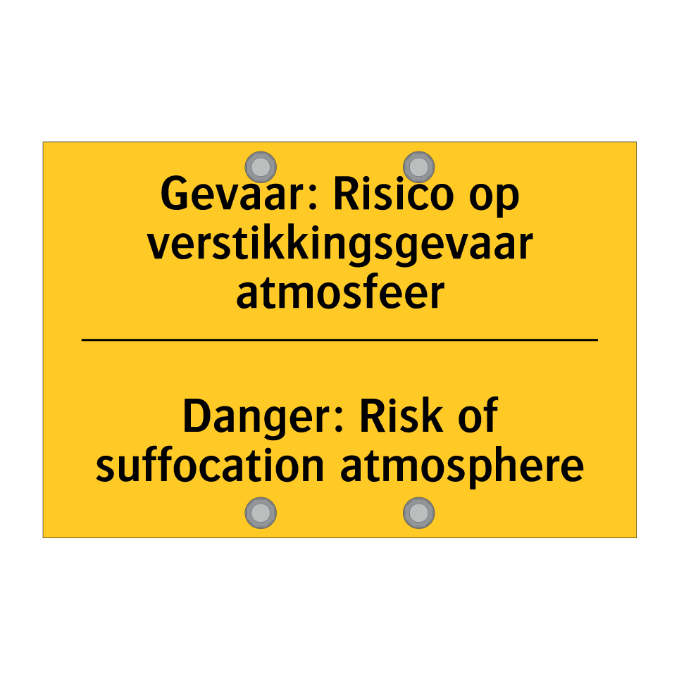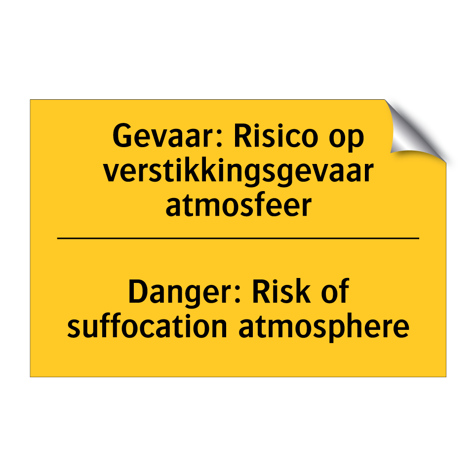 Waarschuwingsbord met de tekst Gevaar: Risico op verstikkingsgevaar atmosfeer / Danger: Risk of suffocation atmosphere