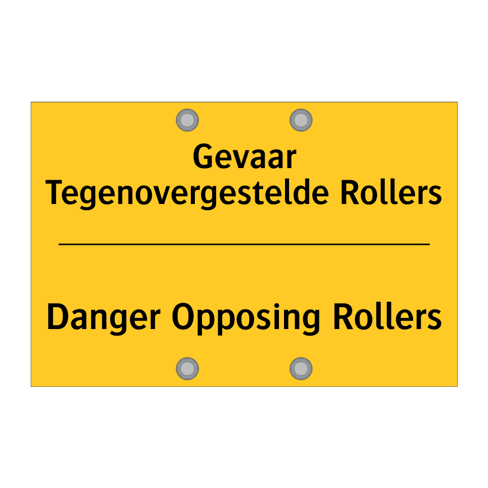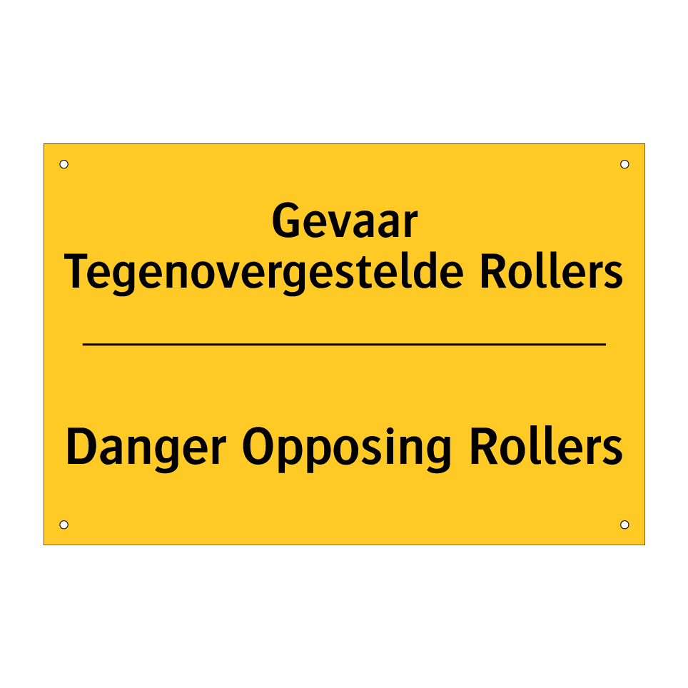 Waarschuwingsbord met de tekst Gevaar Tegenovergestelde Rollers / Danger Opposing Rollers