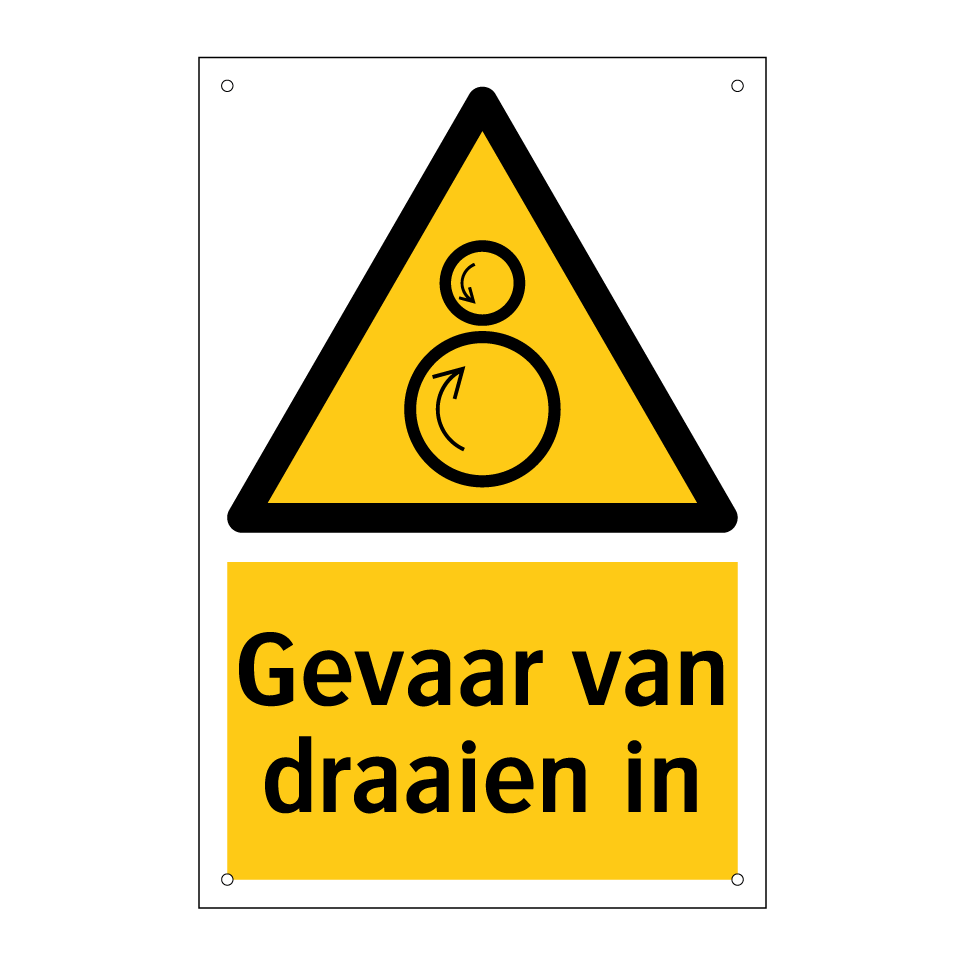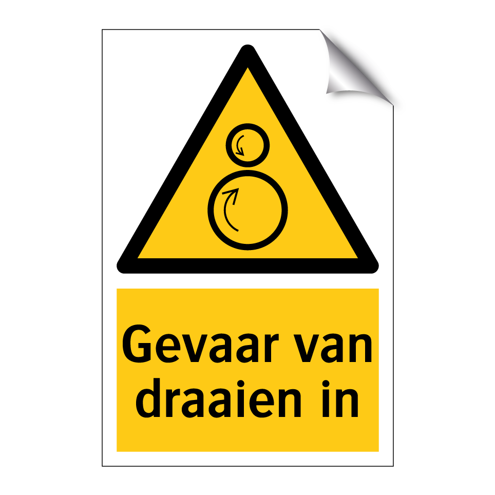 Waarschuwingsbord met de tekst Gevaar van draaien in