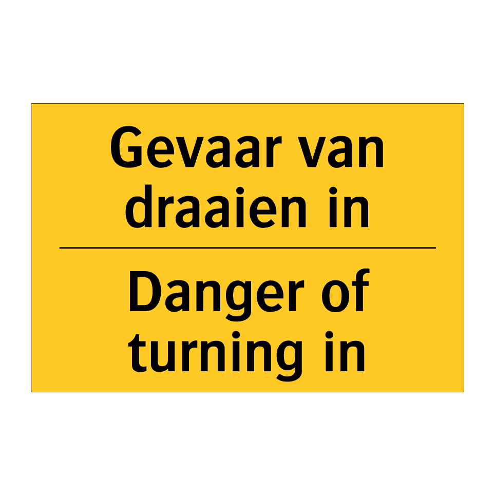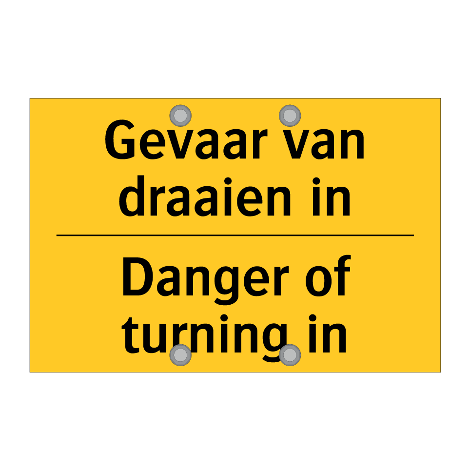 Waarschuwingsbord met de tekst Gevaar van draaien in / Danger of turning in