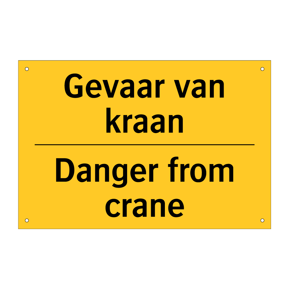 Waarschuwingsbord met de tekst Gevaar van kraan / Danger from crane